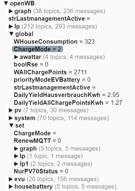 Soll ich vor dem nächsten Test irgendwelche MQTT-Variablen löschen? openWB/set/ChargeMode? Das macht ja der Fix, wenn ich Ihn richtig deute.