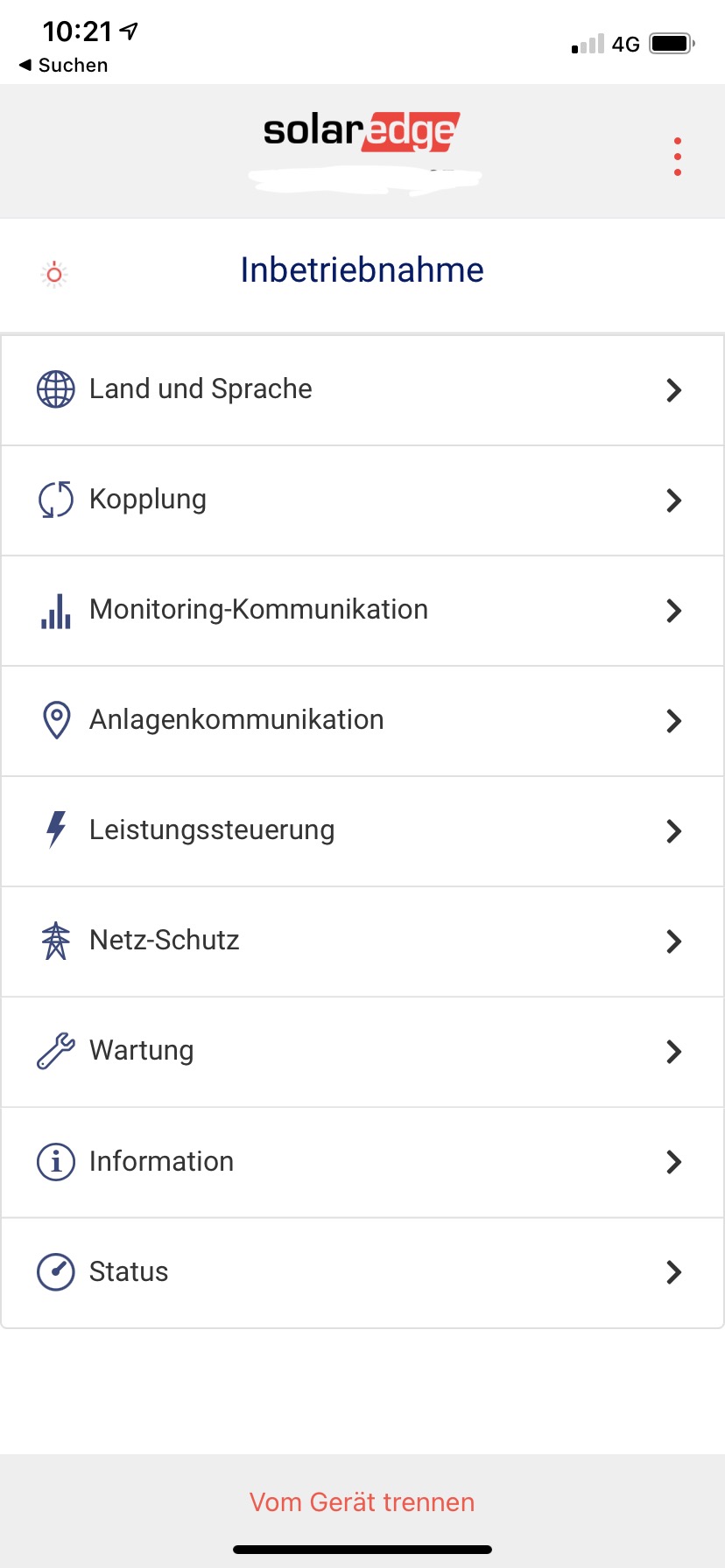 - SolarEdge SetApp Startbildschirm