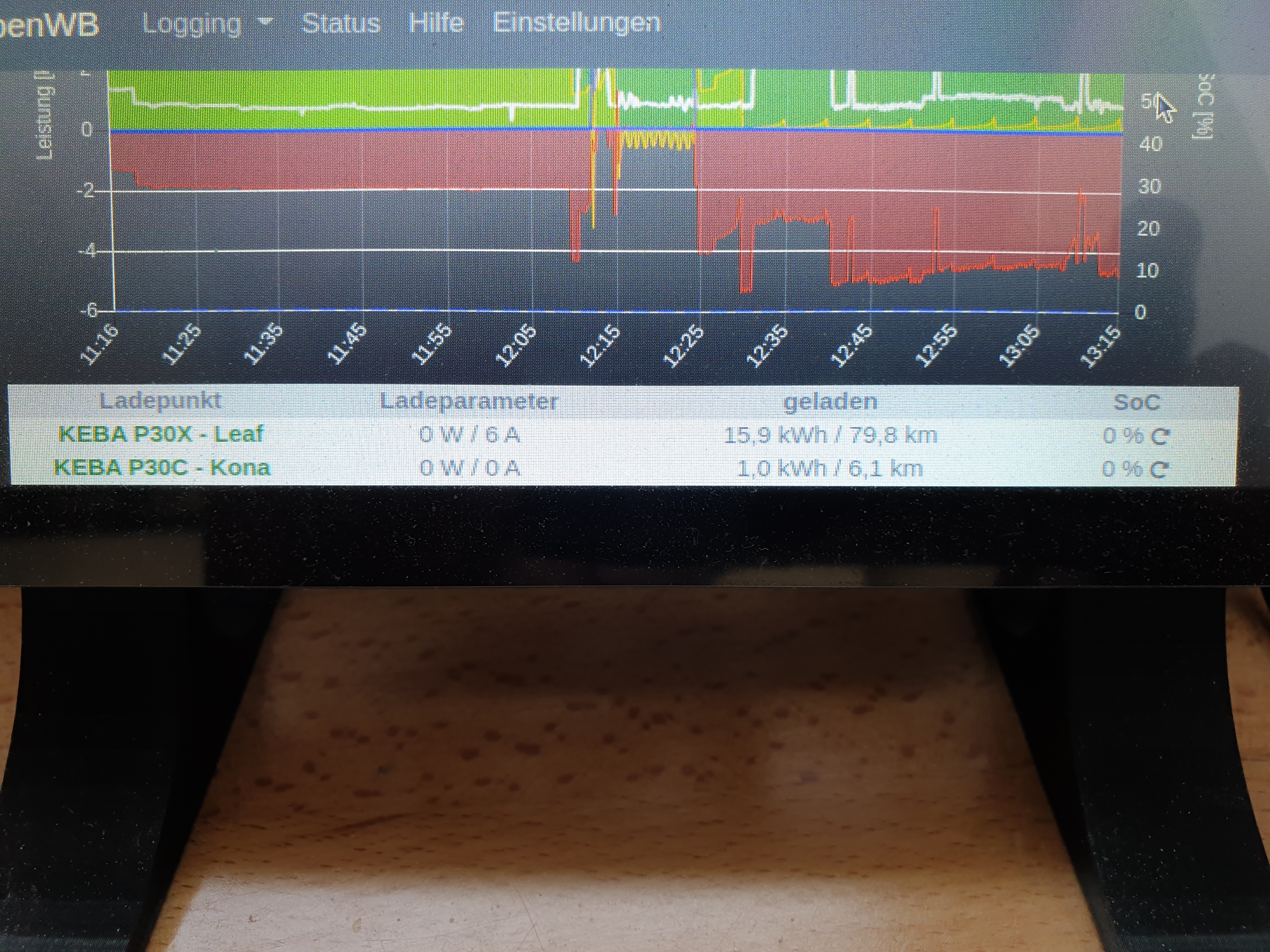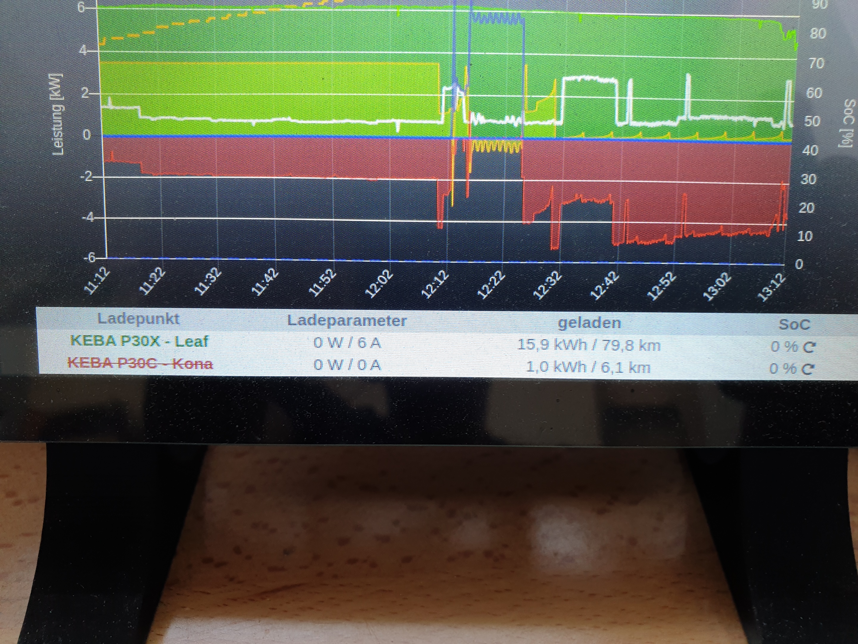 Test des Kona an der P30X hat eigentlich auch fast erwartungsgemäß funktioniert (Regelung war um die 3,x kW, wobei ich eigentlich eine Mindestladung von ca. 3 x 6A x 230 V = 4,14 kW erwartet hätte).