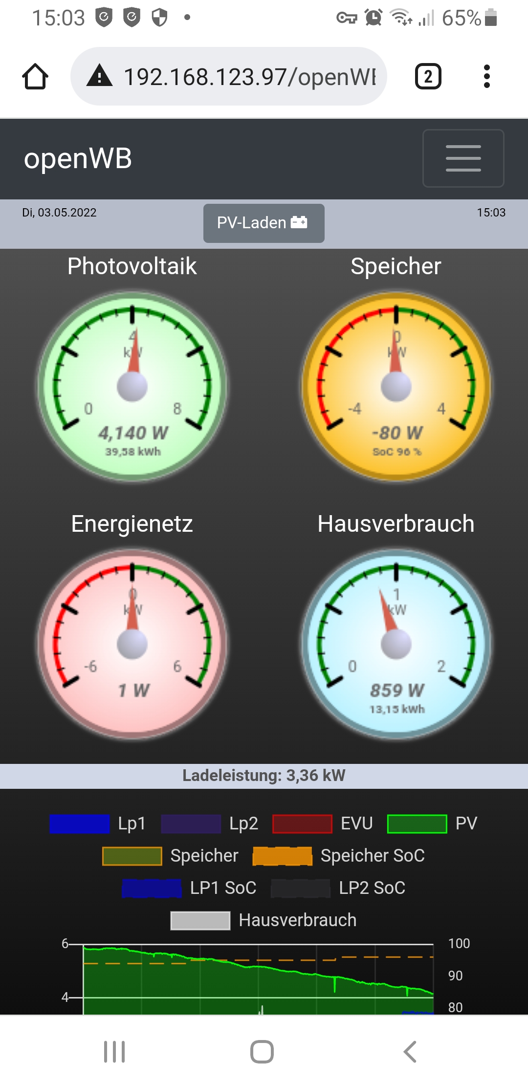 -> Hab ich das richtig verstanden, du hast nichts an der Config (Lp1 und Lp2 wie bisher) geändert sondern nur den leaf zum Laden genommen und die p30C hat normal pv unterstütz geladen ?
