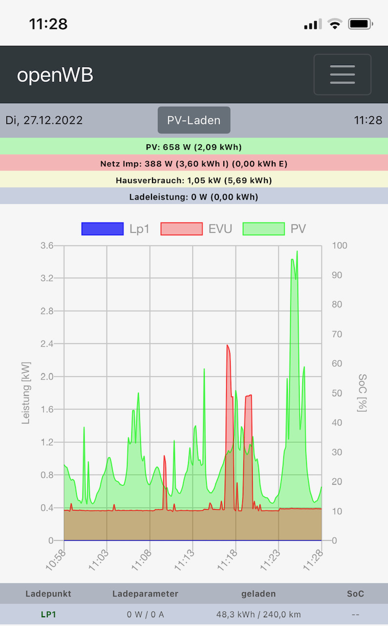 Ich benutze jeweils einen Youless LS110 zur Messung der PV-Einspeiseleistung und einen zur Messung des EVU-Netzimports. Da ich zu 100% einspeise, ist bei mir der Netzimport identisch mit dem Hausverbrauch. Nun berechnet OpenWB aber offensichtlich den Hausverbrauch als Summe aus Netzimport + Einspeiseleistung, was dazu führt, dass die Überschussleistung, die zum Starten der PV-Überschussladung erforderlich ist, nie erreicht wird. - Jetzt meine Frage: Weiß jemand, in welcher Datei und wo dort ich eine Anpassung vornehmen kann, damit die PV-Leistung nicht mehr dem Hausverbrauch zugerechnet wird?