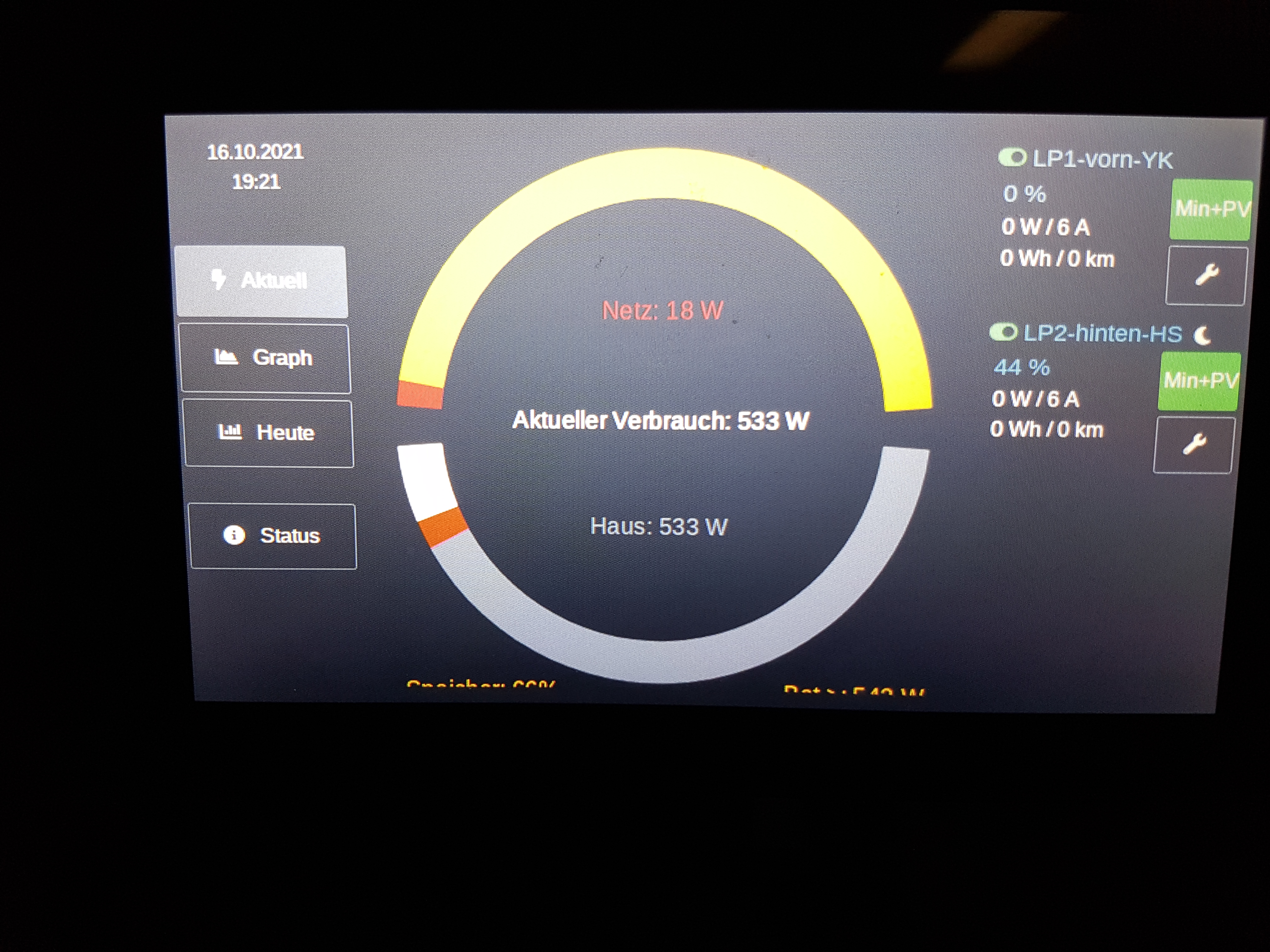 .....es wird schon besser. Aber unten ist die Beschriftung noch nicht vollständig. Und manchmal tauchen unten und rechts die Scrollbalken auf (nach Display neu laden), dann reicht es nicht für Min+PV.