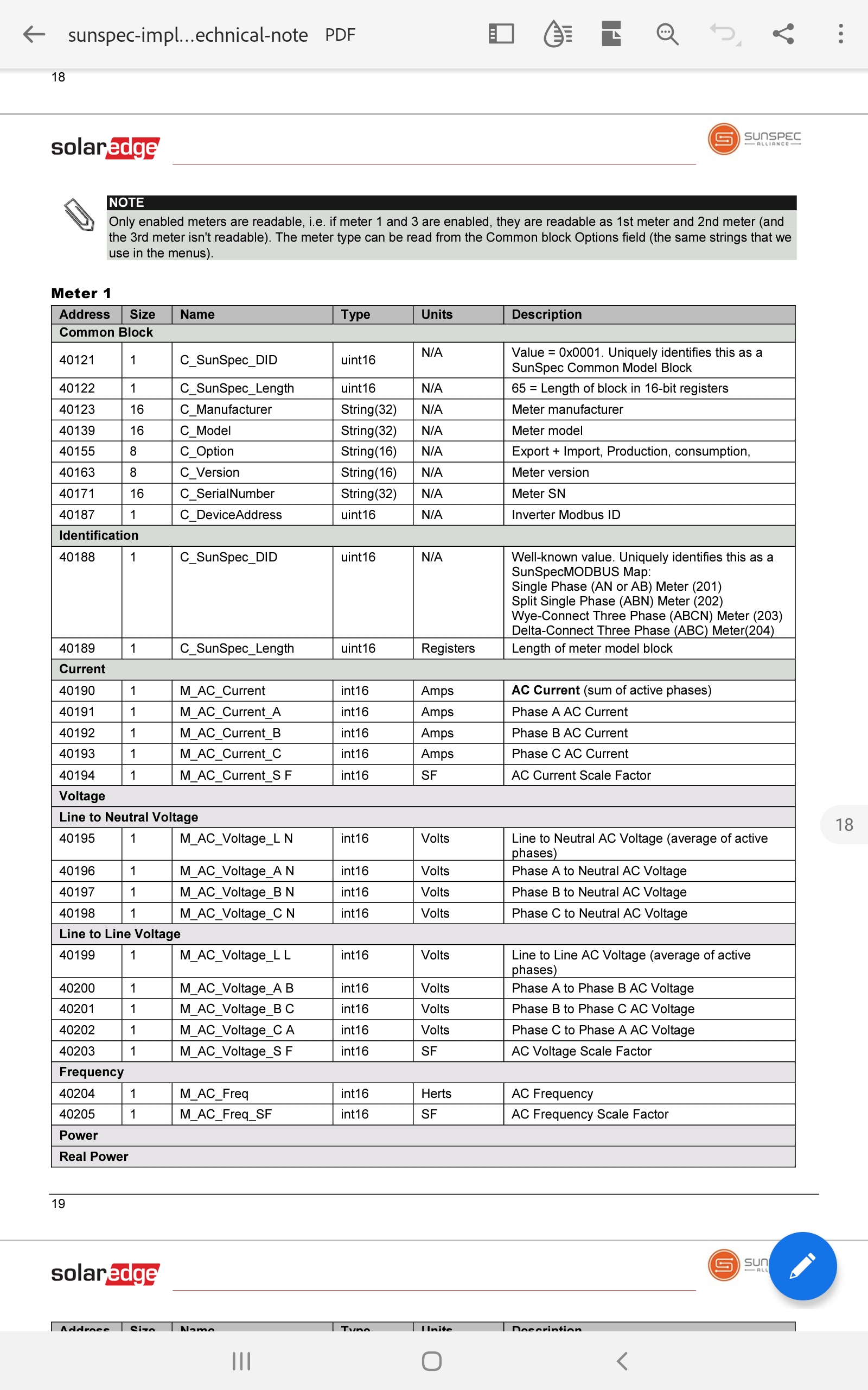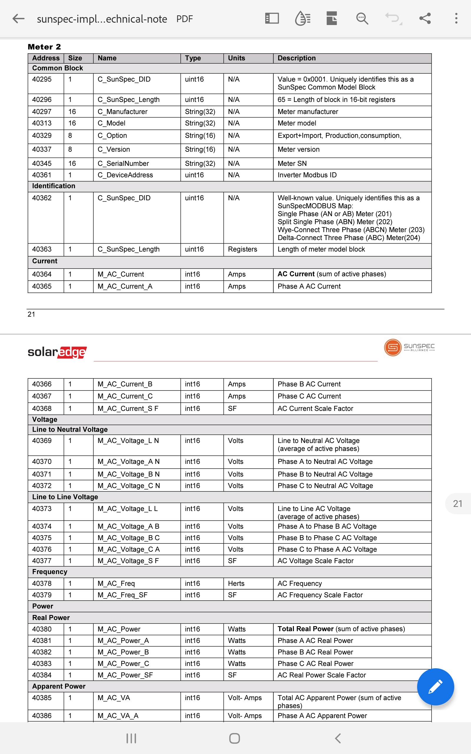 Der Evu Punkt wird über einen Meter gelesen Hier die entsprechende Doku von Solaredge Du siehst an der adresse 40180 + 15 , dass hier die Volt pro Phase 23802 angezeigt wird.