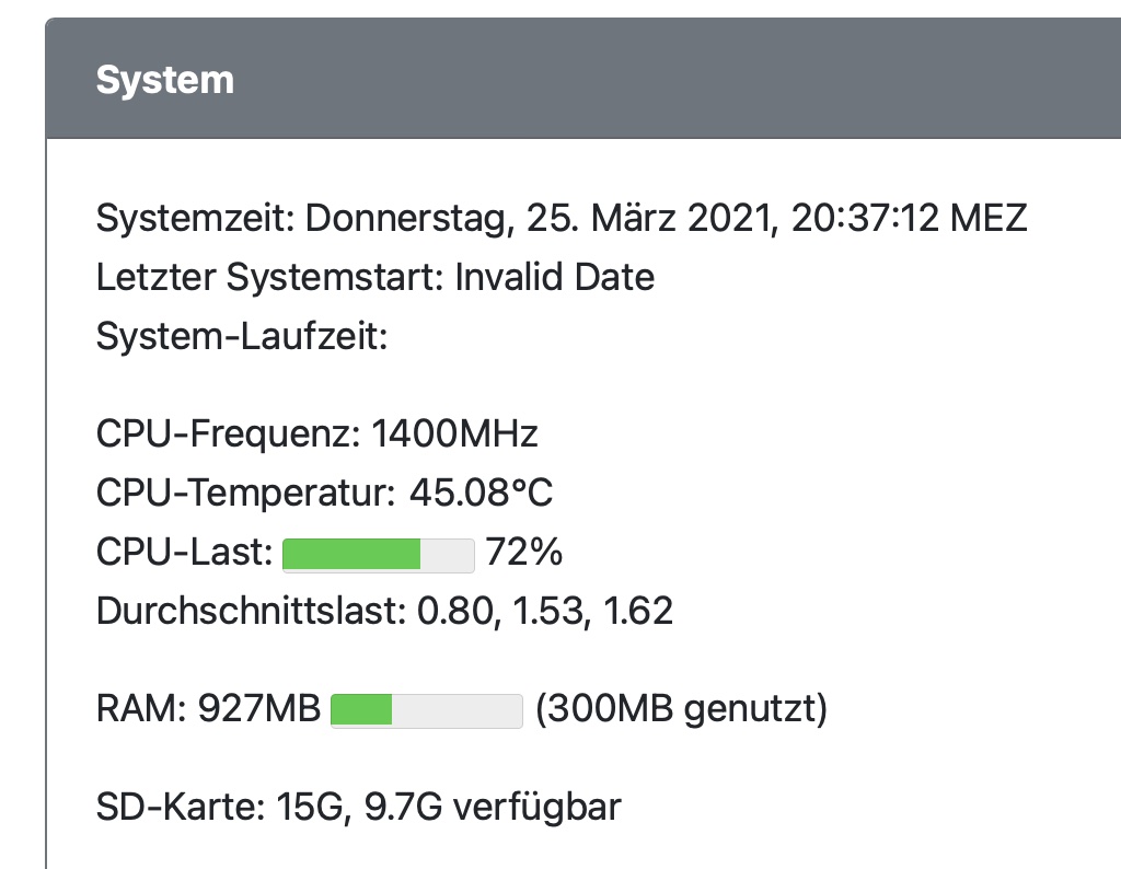 Kleiner Schönheitsfehler. Nach Update auf 1.9.220 zeigt Letzter Systemstart: Invalid Date und Systemlaufzeit ist leer.