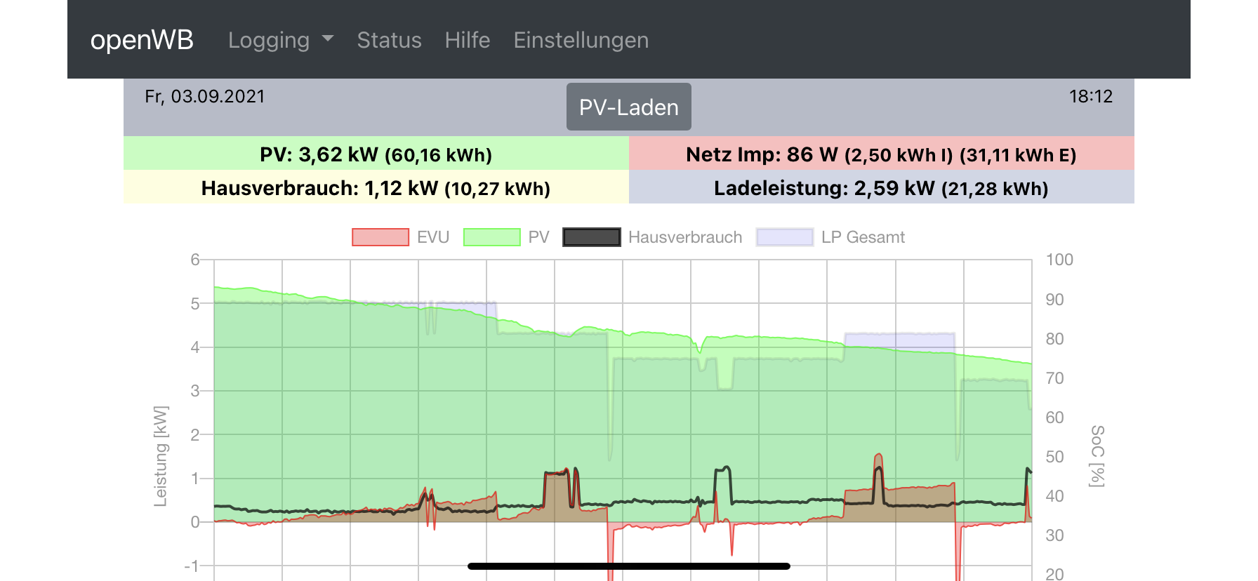 Du kannst aber bitte auch unter Status die Ströme im LP vergleichen. Bei 1p darf nur auf erster Phase gezogen werden, bei 3p dann auf allen 3 Phasen.