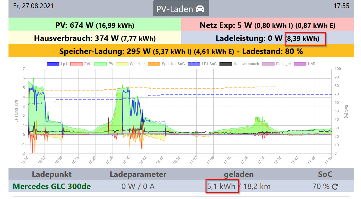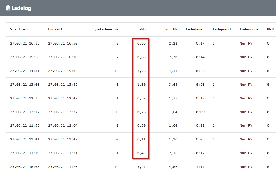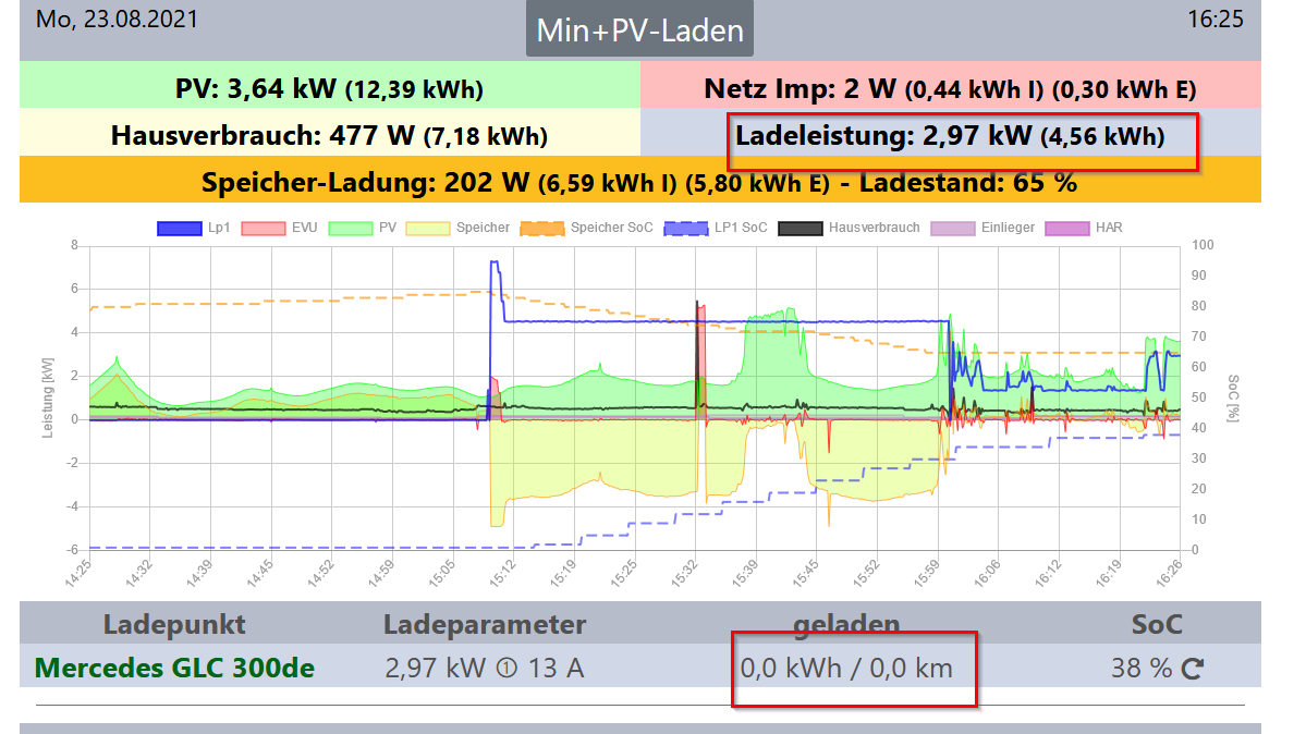 Die Anzeige "geladen" stimmt nicht mit der "Ladeleistung" und dem Ladelog überein.