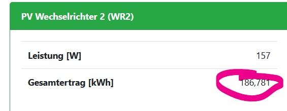 Habe gestern meinen openWB neu aufgesetzt - und dachte dass der Gesamtstand dann auch genulllt ist. Beim Kostal piko war das so, allerdings wars beim zweiten WR, bzw. besser beim dort eingesetzten SDM120 nicht so - d.h. dert Gesamtzählerstand wurde leider übernommen.