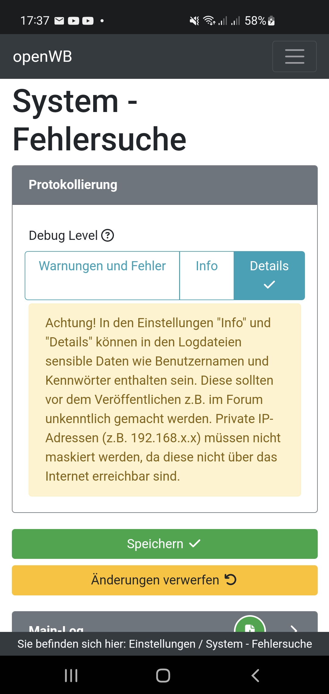 Debug Level habe ich schon auf Details gestellt. Wie kann ich denn mit der Version 2 ein Log erstellen?