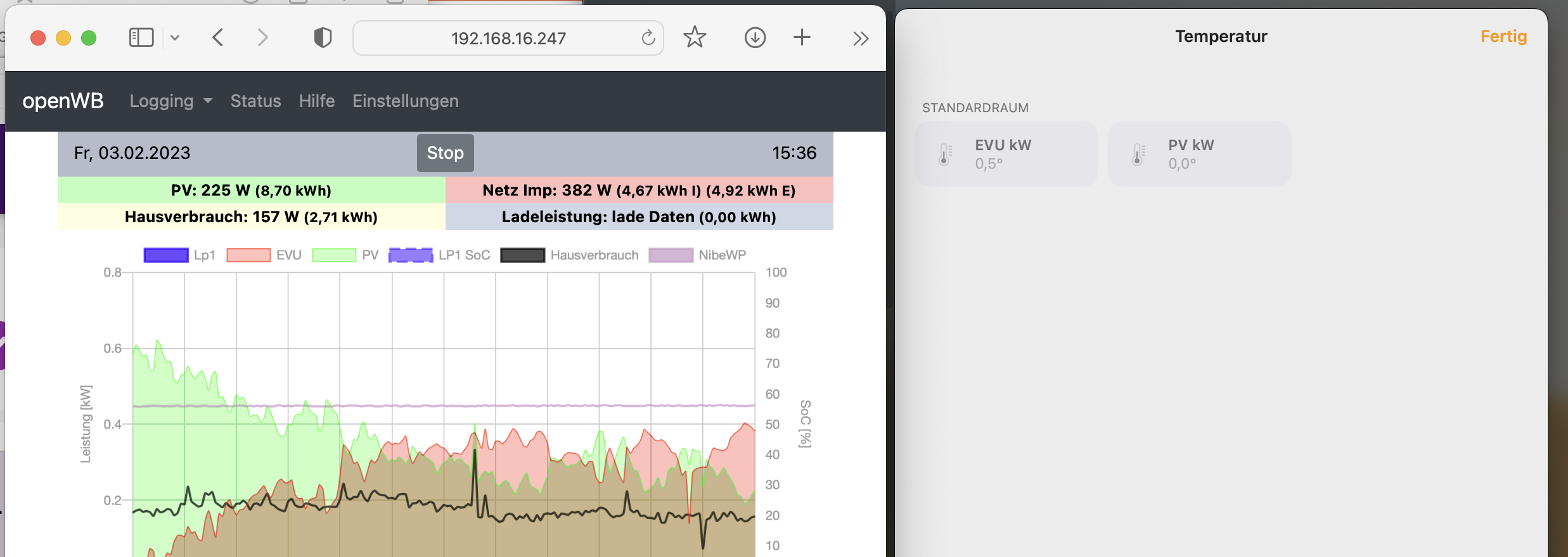 9.1kw PVA, Solaredge WR (se9k) + Modbuszähler (SE-WND-3Y400-MB-K1), OpenWB V1 mit Phasenwechsel und Überschussladen, aktuellste stable Version im Einsatz