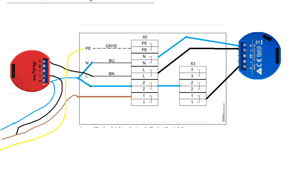 Shelly 1 zu X3: 2/1 (Leitung kommt aber auch vom Shelly 1 PM)