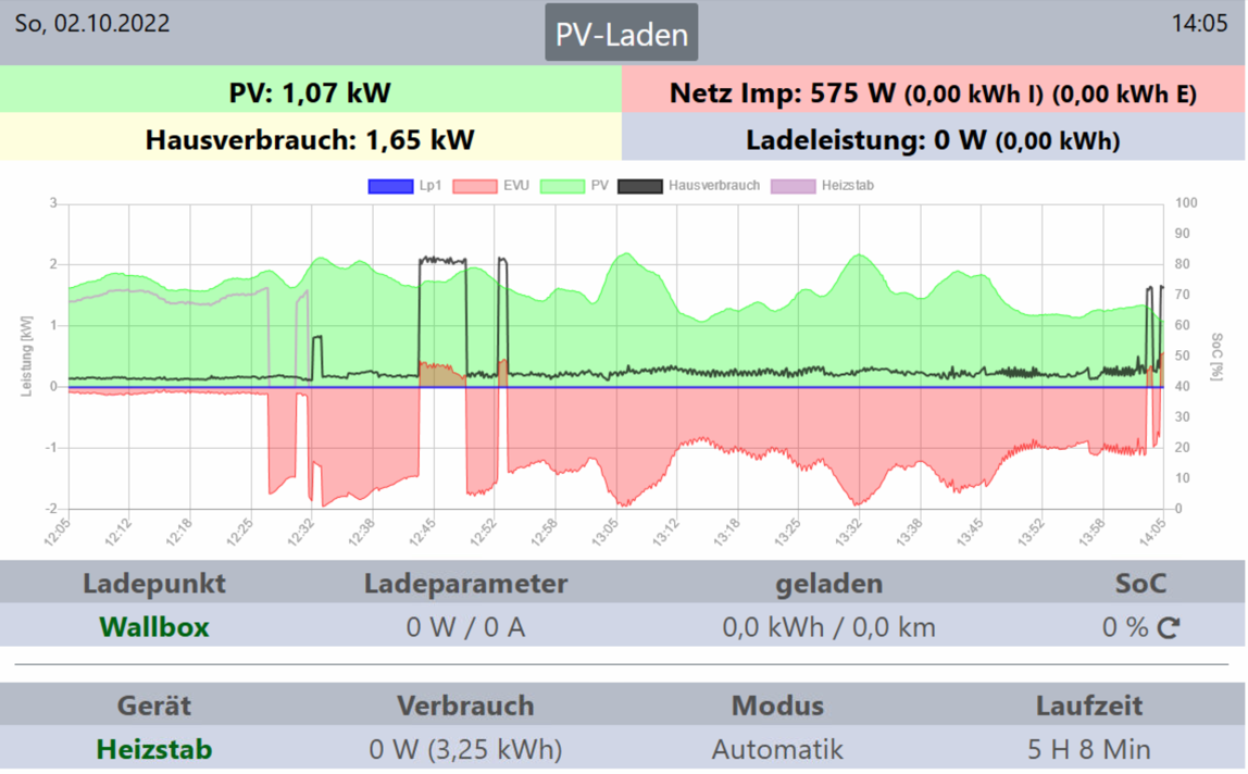 Es zeigt sich leider ein Problem. Trotz Überschuss von ca. 9 kW wird der Heizstab immer nur mit geringer eingeschalten und er schaltet auch sehr häufig. Das Verhalten zeigt sich seit ein paar Tagen. Ich habe an der openWB nichts verändert. Hast du eine Idee woran das liegen könnte?okaegi hat geschrieben: So Okt 02, 2022 12:18 pm Ah das sieht gut aus, offensichtlich wird bei jedem Durchlauf acthor upgedatet. Danke für die Rückmeldung,