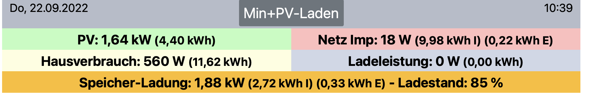 HansR hat geschrieben: Do Sep 22, 2022 5:38 pm Cool, anderes Theme ausgewählt und schon passt es. Sogar der Tagesverbrauch wird damit angezeigt.