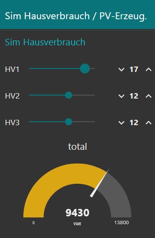 [{"id":"9c914c19df595675","type":"tab","label":"Gero","disabled":false,"info":"","env":[]},{"id":"97ce6c56cb2baf03","type":"ui_slider","z":"9c914c19df595675","name":"","label":"HV1","tooltip":"","group":"0268d1212c203718","order":1,"width":"4","height":"1","passthru":true,"outs":"all","topic":"topic","topicType":"msg","min":0,"max":"20","step":1,"className":"","x":110,"y":100,"wires":[["f975d815e97a181b"]]},{"id":"1024d77b919acba0","type":"ui_slider","z":"9c914c19df595675","name":"","label":"HV2","tooltip":"","group":"0268d1212c203718","order":3,"width":"4","height":"1","passthru":true,"outs":"all","topic":"topic","topicType":"msg","min":0,"max":"20","step":1,"className":"","x":110,"y":180,"wires":[["9bd96c0b53581396"]]},{"id":"9bd96c0b53581396","type":"ui_numeric","z":"9c914c19df595675","name":"n2","label":"","tooltip":"","group":"0268d1212c203718","order":4,"width":"2","height":"1","wrap":false,"passthru":true,"topic":"topic","topicType":"msg","format":"{{value}}","min":0,"max":"20","step":1,"className":"","x":250,"y":180,"wires":[["9b8b60bb10225244"]]},{"id":"f975d815e97a181b","type":"ui_numeric","z":"9c914c19df595675","name":"n1","label":"","tooltip":"","group":"0268d1212c203718","order":2,"width":"2","height":"1","wrap":false,"passthru":true,"topic":"topic","topicType":"msg","format":"{{value}}","min":0,"max":"20","step":1,"className":"","x":250,"y":100,"wires":[["f76fd4277af673dc"]]},{"id":"f76fd4277af673dc","type":"change","z":"9c914c19df595675","name":"","rules":[{"t":"set","p":"s1","pt":"flow","to":"payload","tot":"msg"}],"action":"","property":"","from":"","to":"","reg":false,"x":450,"y":100,"wires":[["a410097e0fee0c91"]]},{"id":"9b8b60bb10225244","type":"change","z":"9c914c19df595675","name":"","rules":[{"t":"set","p":"s2","pt":"flow","to":"payload","tot":"msg"}],"action":"","property":"","from":"","to":"","reg":false,"x":450,"y":180,"wires":[["a410097e0fee0c91"]]},{"id":"a410097e0fee0c91","type":"function","z":"9c914c19df595675","name":"Summe in Watt","func":"msg.payload = flow.get(\"s1\")+flow.get(\"s2\")+flow.get(\"s3\");\nmsg.payload = 230*msg.payload;\nreturn msg;","outputs":1,"noerr":0,"initialize":"","finalize":"","libs":[],"x":660,"y":180,"wires":[["366353fbdc4e66b1"]]},{"id":"366353fbdc4e66b1","type":"ui_gauge","z":"9c914c19df595675","name":"","group":"0268d1212c203718","order":7,"width":0,"height":0,"gtype":"gage","title":"total","label":"Watt","format":"{{value}}","min":0,"max":"13800","colors":["#00b500","#e6e600","#ca3838"],"seg1":"","seg2":"","className":"","x":870,"y":180,"wires":[]},{"id":"37302d1de942153d","type":"mqtt in","z":"9c914c19df595675","name":"Hausverbrauch","topic":"openWB/global/WHouseConsumption","qos":"2","datatype":"auto","broker":"c4cb83c8.1bd0c","nl":false,"rap":true,"rh":0,"inputs":0,"x":140,"y":380,"wires":[[]]},{"id":"f60e38b81463bb64","type":"ui_slider","z":"9c914c19df595675","name":"","label":"HV3","tooltip":"","group":"0268d1212c203718","order":5,"width":"4","height":"1","passthru":true,"outs":"all","topic":"topic","topicType":"msg","min":0,"max":"20","step":1,"className":"","x":110,"y":260,"wires":[["77a398ae8b4481ab"]]},{"id":"77a398ae8b4481ab","type":"ui_numeric","z":"9c914c19df595675","name":"n3","label":"","tooltip":"","group":"0268d1212c203718","order":6,"width":"2","height":"1","wrap":false,"passthru":true,"topic":"topic","topicType":"msg","format":"{{value}}","min":0,"max":"20","step":1,"className":"","x":250,"y":260,"wires":[["4778cf914b1668f2"]]},{"id":"4778cf914b1668f2","type":"change","z":"9c914c19df595675","name":"","rules":[{"t":"set","p":"s3","pt":"flow","to":"payload","tot":"msg"}],"action":"","property":"","from":"","to":"","reg":false,"x":450,"y":260,"wires":[["a410097e0fee0c91"]]},{"id":"0268d1212c203718","type":"ui_group","name":"Sim Hausverbrauch","tab":"744b5117.d18b28","order":1,"disp":true,"width":"6","collapse":false,"className":""},{"id":"c4cb83c8.1bd0c","type":"mqtt-broker","name":"OpenWB","broker":"192.168.8.11","port":"1883","clientid":"","usetls":false,"compatmode":false,"keepalive":"30","cleansession":true,"birthTopic":"","birthQos":"0","birthRetain":"false","birthPayload":"","closeTopic":"","closeQos":"0","closeRetain":"false","closePayload":"","willTopic":"","willQos":"0","willRetain":"false","willPayload":""},{"id":"744b5117.d18b28","type":"ui_tab","name":"Sim Hausverbrauch / PV-Erzeug.","icon":"dashboard","disabled":false,"hidden":false}]-