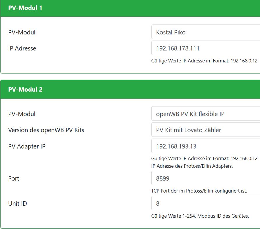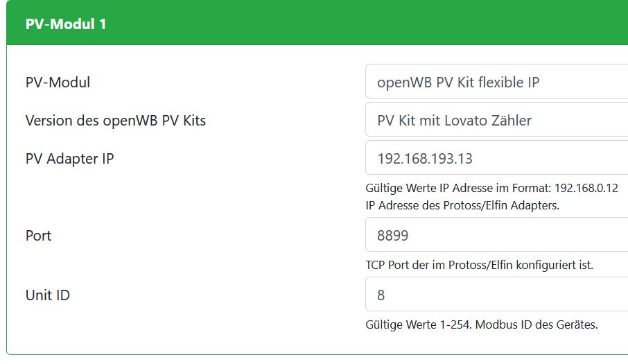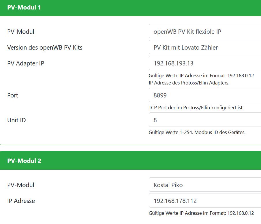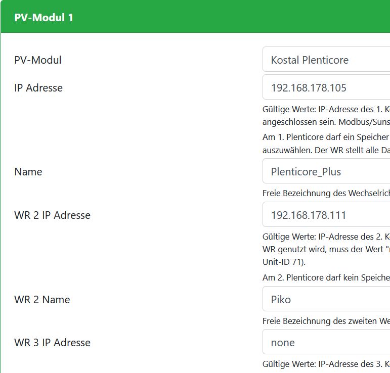 Nun habe ich es so in der PV Modulkonfiguration eingerichtet: