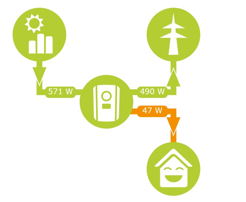 Im Plenti direkt lese ich gerade 480W aus und die oWB zeigt 415W an.