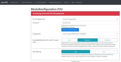 In der Modulkonfiguration der EVU war bisher Variante 1 ausgewählt, habe es auch mit Variante 2 probiert: