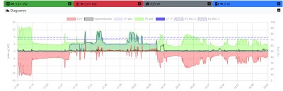 ph3 hat geschrieben: Mo Jul 03, 2023 7:27 am Mir ist nun aufgefallen, dass in der Tagesauswertung der Verbrauch zwar unter in den "Summen" angezeigt wird, aber nicht in Diagramm. Also die schwarze Verbrauchslinie fehlt komplett. Dargestellt wird die PV-Produktion, Einspeisung/Bezug und die WB.