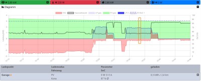 Noch ein Punkt hierzu: Auch dieses Regelungs-Problem kann ich jederzeit wieder herstellen: Sobald das erste Auto den vorgesehenen Ladestrom nicht mehr annimmt (da Auto voll), wird dieser weiter reserviert und in Folge ins Netz eingespeist. Erst, wenn ich das Auto ausstecke, wird der Strom dem anderen Auto zugeordnet. Dann passt es wieder.Ilchi hat geschrieben: Mi Sep 13, 2023 11:14 am Hallo,