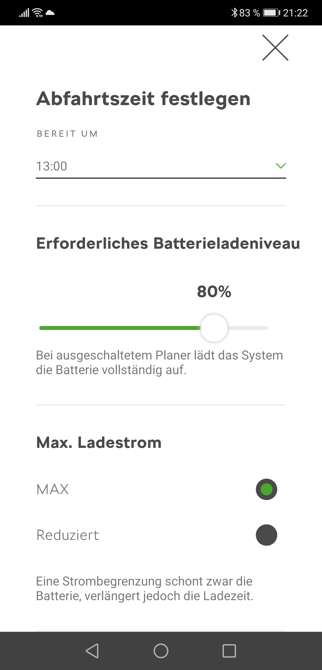 Die Funktion den maximalen Ladestand anzugeben gibt es auch in der Skoda-Connect-App. Dazu muss man einen Anfahrtsplan erstellen. Dort kann man dann den maximalen Ladestand angeben. Mir geht es eher darum, dass ich das Auto gerne bis ca. 30% laden möchte auch wenn keine Sonne scheint, damit ich immer eine Grundreichweite habe.