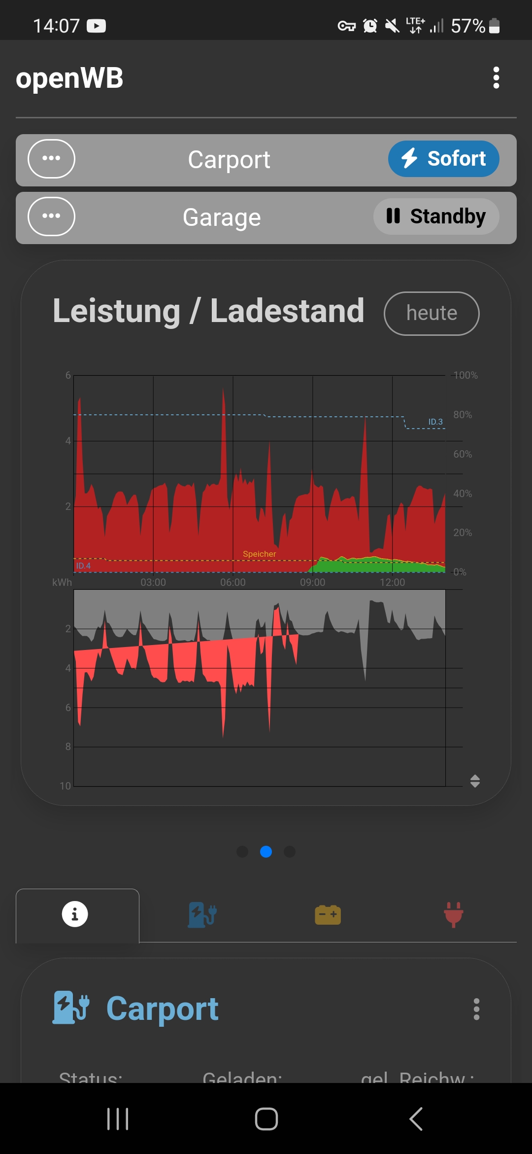 Im Screenshot sieht man die Werte für den Tages-Graph, aber nur die ersten 10 Minuten. Interessant wird es ja dann später, wo es im Graph in der unteren Hälfte die nach oben gerichteten Spitzen gibt...