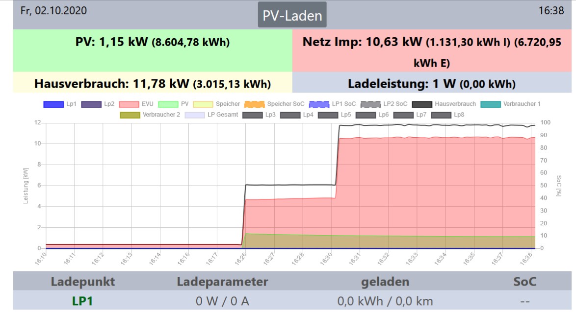 openWB Charge Controller Ver. 1.9.227 auf Pi 4 (buster) - go-eCharger Ver. 040.0 an ca. 35m-Leitung und 3x25A FI-LS Typ-A - WR: Fronius Symo Ver. 3.16.7-1 Modbus TCP - EVU: smartPi MQTT/Node-RED - BEV: Renault Zoe R110 Zen 2020