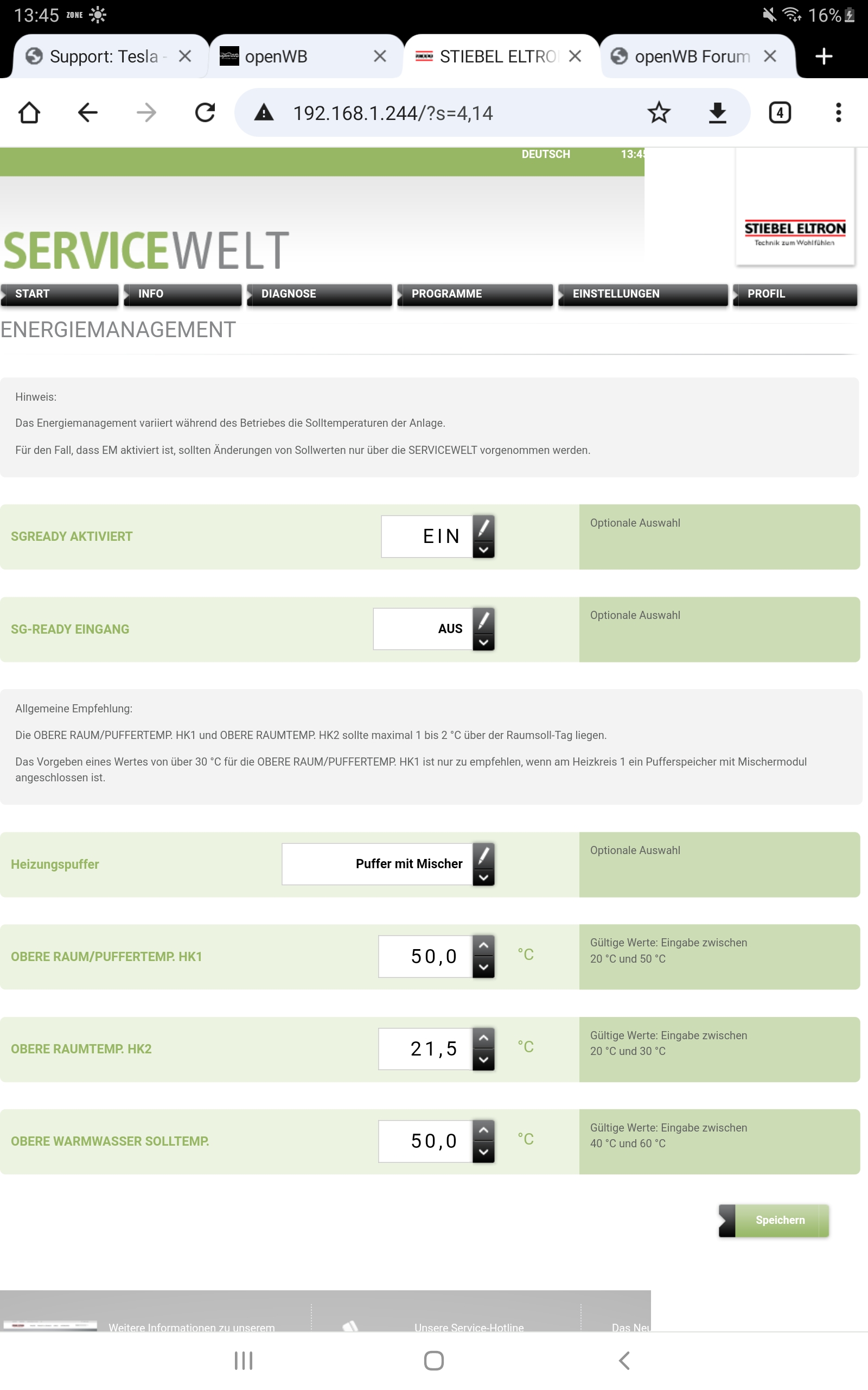 Ich habe auch Stiebel wp und openwb im Einsatz. Openwb meldet Stiebel nur "sg ready zustand 3" und stiebel macht den Rest.
