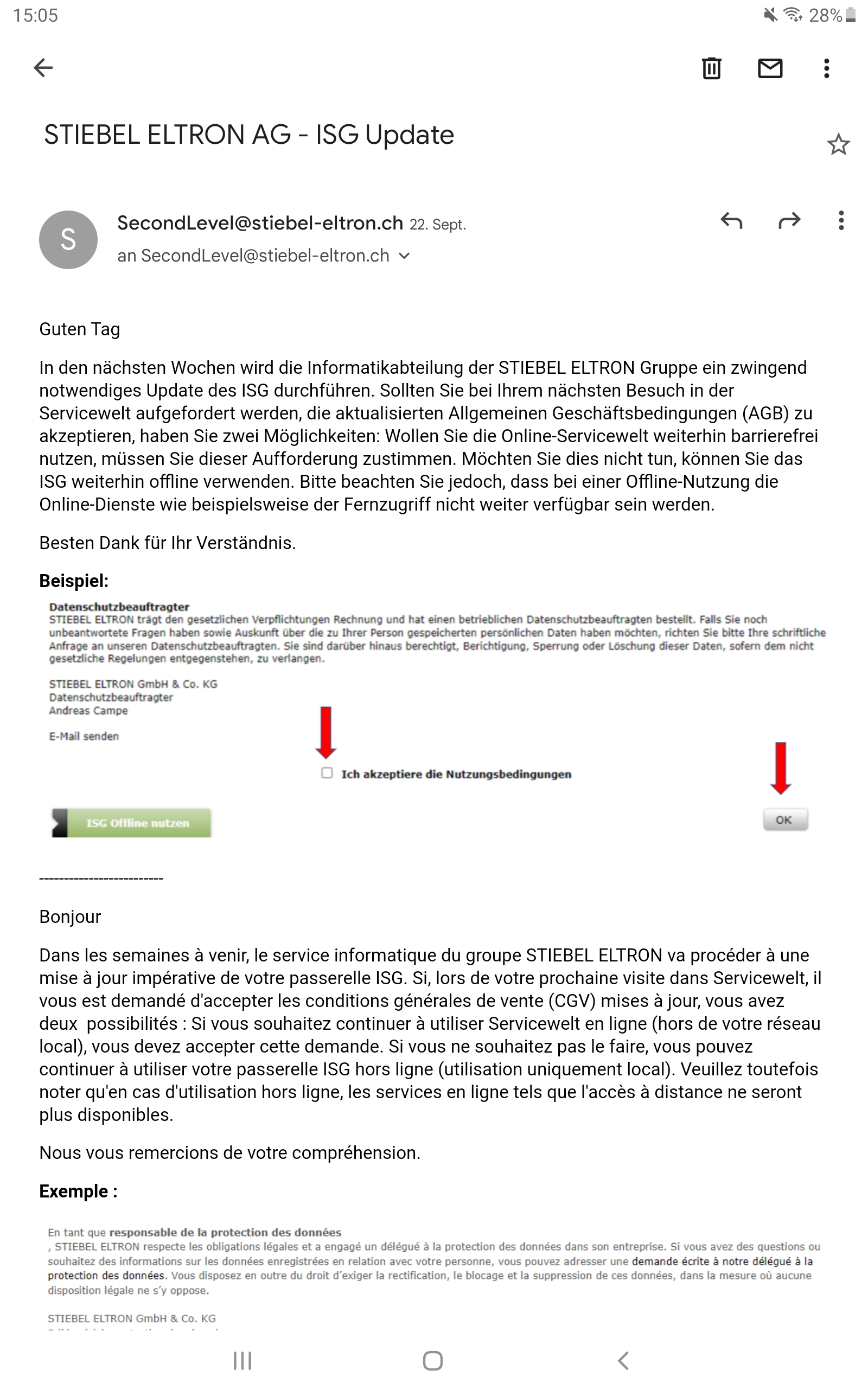 Stiebel hat mein isg web remote upgedatet (habe einen Servicevertrag wegen der verlängerten Garantieperiode). Siehe Anhang.