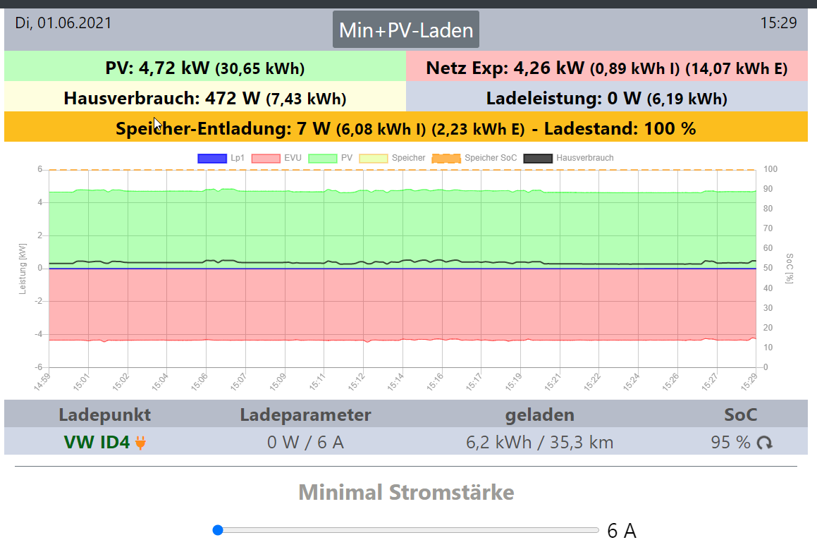Ich habe jetzt bei meinem ID4 beobachtet, dass bei einem SoC von ca 95% mein Auto auch immer "einschläft" trotz "Min+PV-Laden". Kriege über diesen Modus einfach nicht mehr geladen als 95%. Ist quasi das gleich Verhalten wie beim "normalen" einschlafen: