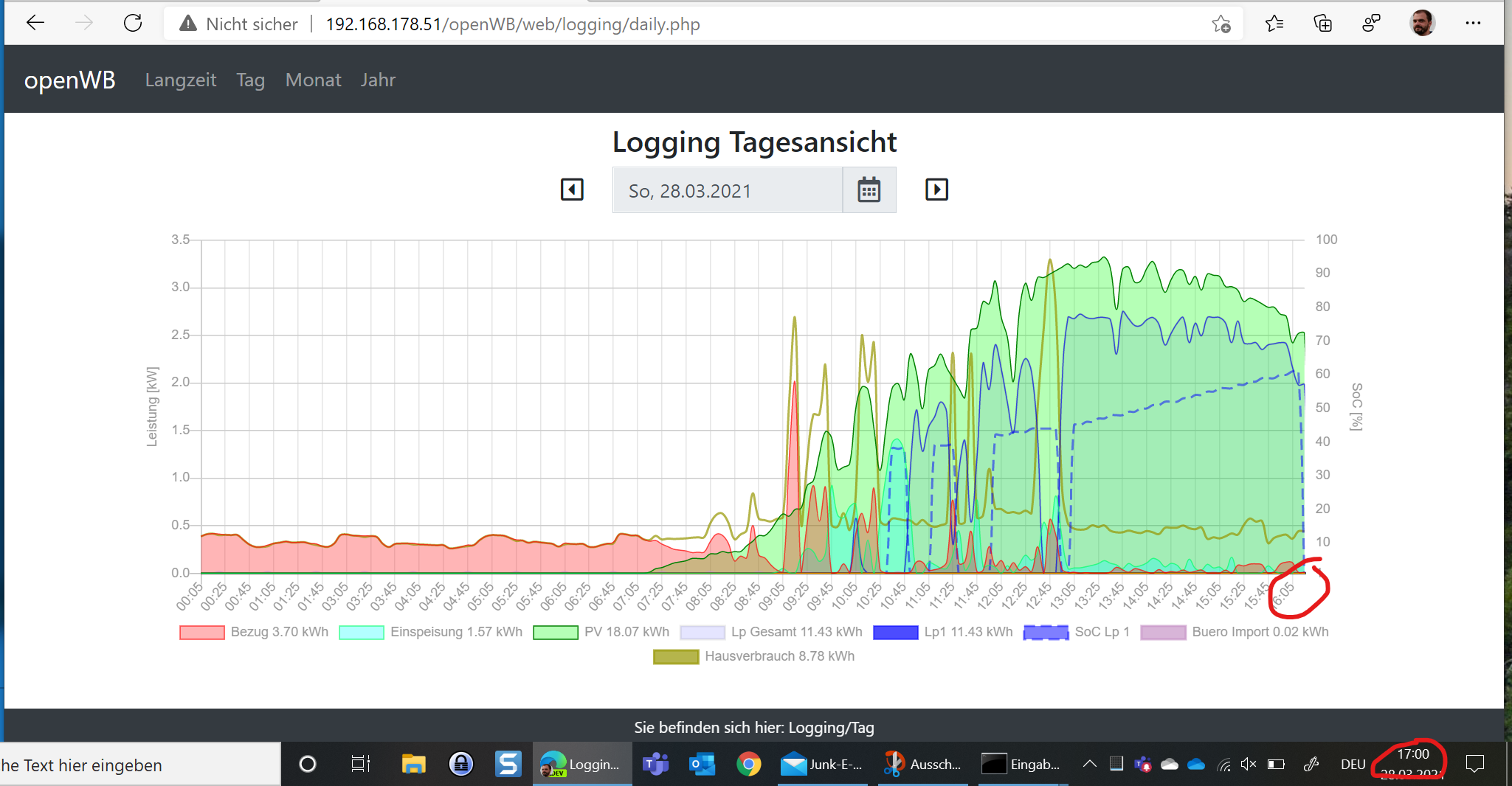 Auch im Ladelog fehlen die Daten nach 16:10: