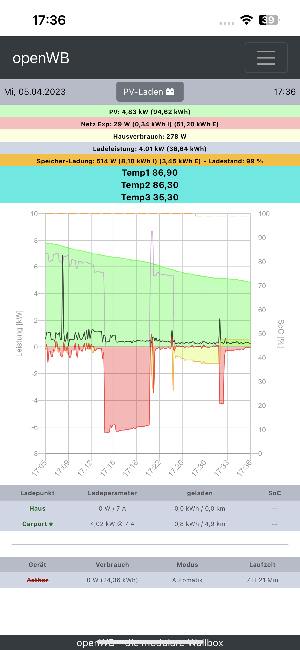 Stand jetzt kommt die Fehlermeldung nicht. Mal sehen was das Laden macht, sobald die Frau mit dem Niro Heim kommt.