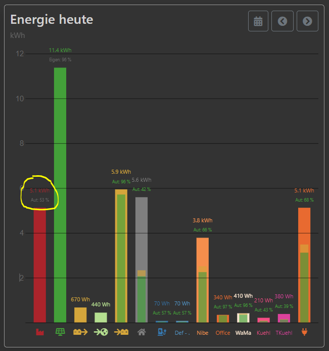 wawibu hat geschrieben: Fr Sep 22, 2023 10:53 am Für mich ist das unheilmich schwer rote Schrift auf dunklem Hintergrund zu lesen. Bei der aktuellen Leistung geht das noch, bei Energie Heute kann ich die kWh eigentlich gar nicht lesen - genauso den Autarkie Grad.
