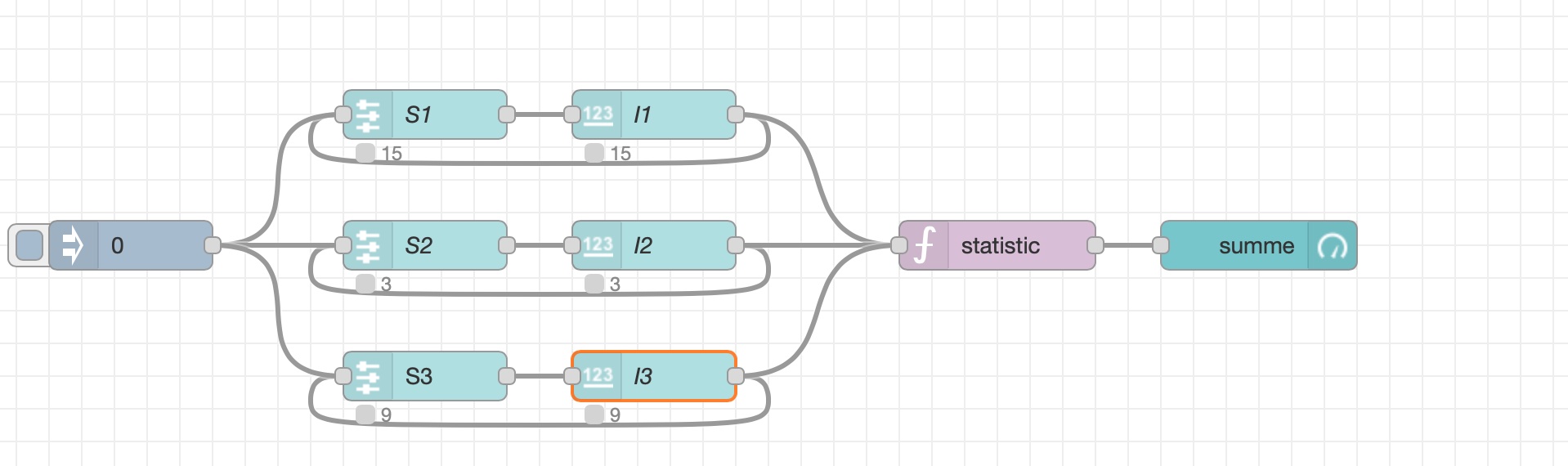 [{"id":"6eac542e.5dabf4","type":"tab","label":"Flow 1","disabled":false,"info":""},{"id":"e56b20c5.ce2a78","type":"ui_slider","z":"6eac542e.5dabf4","name":"S1","label":"S1","tooltip":"","group":"1de0097c.41aea7","order":3,"width":"4","height":"1","passthru":true,"outs":"all","topic":"SI1","topicType":"str","min":0,"max":"20","step":1,"className":"","x":270,"y":100,"wires":[["e2dd636a.e87488"]]},{"id":"39d9e634.6f9e2a","type":"ui_slider","z":"6eac542e.5dabf4","name":"S2","label":"S2","tooltip":"","group":"1de0097c.41aea7","order":5,"width":"4","height":"1","passthru":true,"outs":"all","topic":"SI2","topicType":"str","min":0,"max":"20","step":1,"className":"","x":270,"y":180,"wires":[["ffb1249.b156ad8"]]},{"id":"ffb1249.b156ad8","type":"ui_numeric","z":"6eac542e.5dabf4","name":"I2","label":"","tooltip":"","group":"1de0097c.41aea7","order":6,"width":"2","height":"1","wrap":false,"passthru":true,"topic":"SI2","topicType":"str","format":"{{value}}","min":0,"max":"20","step":1,"className":"","x":410,"y":180,"wires":[["39d9e634.6f9e2a","9c07867f.be1bb"]]},{"id":"e2dd636a.e87488","type":"ui_numeric","z":"6eac542e.5dabf4","name":"I1","label":"","tooltip":"","group":"1de0097c.41aea7","order":4,"width":"2","height":"1","wrap":false,"passthru":true,"topic":"SI1","topicType":"str","format":"{{value}}","min":0,"max":"20","step":1,"className":"","x":410,"y":100,"wires":[["e56b20c5.ce2a78","9c07867f.be1bb"]]},{"id":"22f39c88.e11c04","type":"ui_slider","z":"6eac542e.5dabf4","name":"","label":"S3","tooltip":"","group":"1de0097c.41aea7","order":7,"width":"4","height":"1","passthru":true,"outs":"all","topic":"SI3","topicType":"str","min":0,"max":"20","step":1,"className":"","x":270,"y":260,"wires":[["a5d3a640.8a69b8"]]},{"id":"9c07867f.be1bb","type":"combine-statistic","z":"6eac542e.5dabf4","name":"","topic":"HV","operator":"sum","falsy":"include","defer":250,"timeout":"0","distinction":"topic","x":620,"y":180,"wires":[["3fbf70b5.4a3ec"]]},{"id":"3fbf70b5.4a3ec","type":"ui_gauge","z":"6eac542e.5dabf4","name":"","group":"1de0097c.41aea7","order":9,"width":0,"height":0,"gtype":"gage","title":"summe","label":"Watt","format":"{{value}}","min":0,"max":"13800","colors":["#00b500","#e6e600","#ca3838"],"seg1":"","seg2":"","className":"","x":780,"y":180,"wires":[]},{"id":"3485204b.a1ab68","type":"inject","z":"6eac542e.5dabf4","name":"","props":[{"p":"payload"}],"repeat":"","crontab":"","once":false,"onceDelay":0.1,"topic":"","payload":"0","payloadType":"num","x":90,"y":180,"wires":[["e56b20c5.ce2a78","39d9e634.6f9e2a","22f39c88.e11c04"]]},{"id":"a5d3a640.8a69b8","type":"ui_numeric","z":"6eac542e.5dabf4","name":"I3","label":"","tooltip":"","group":"1de0097c.41aea7","order":8,"width":"2","height":"1","wrap":false,"passthru":true,"topic":"SI3","topicType":"str","format":"{{value}}","min":0,"max":"20","step":1,"className":"","x":410,"y":260,"wires":[["22f39c88.e11c04","9c07867f.be1bb"]]},{"id":"1de0097c.41aea7","type":"ui_group","name":"Simulation","tab":"744b5117.d18b28","order":1,"disp":true,"width":"6","collapse":false,"className":""},{"id":"744b5117.d18b28","type":"ui_tab","name":"Haussimulation","icon":"dashboard","disabled":false,"hidden":false}]