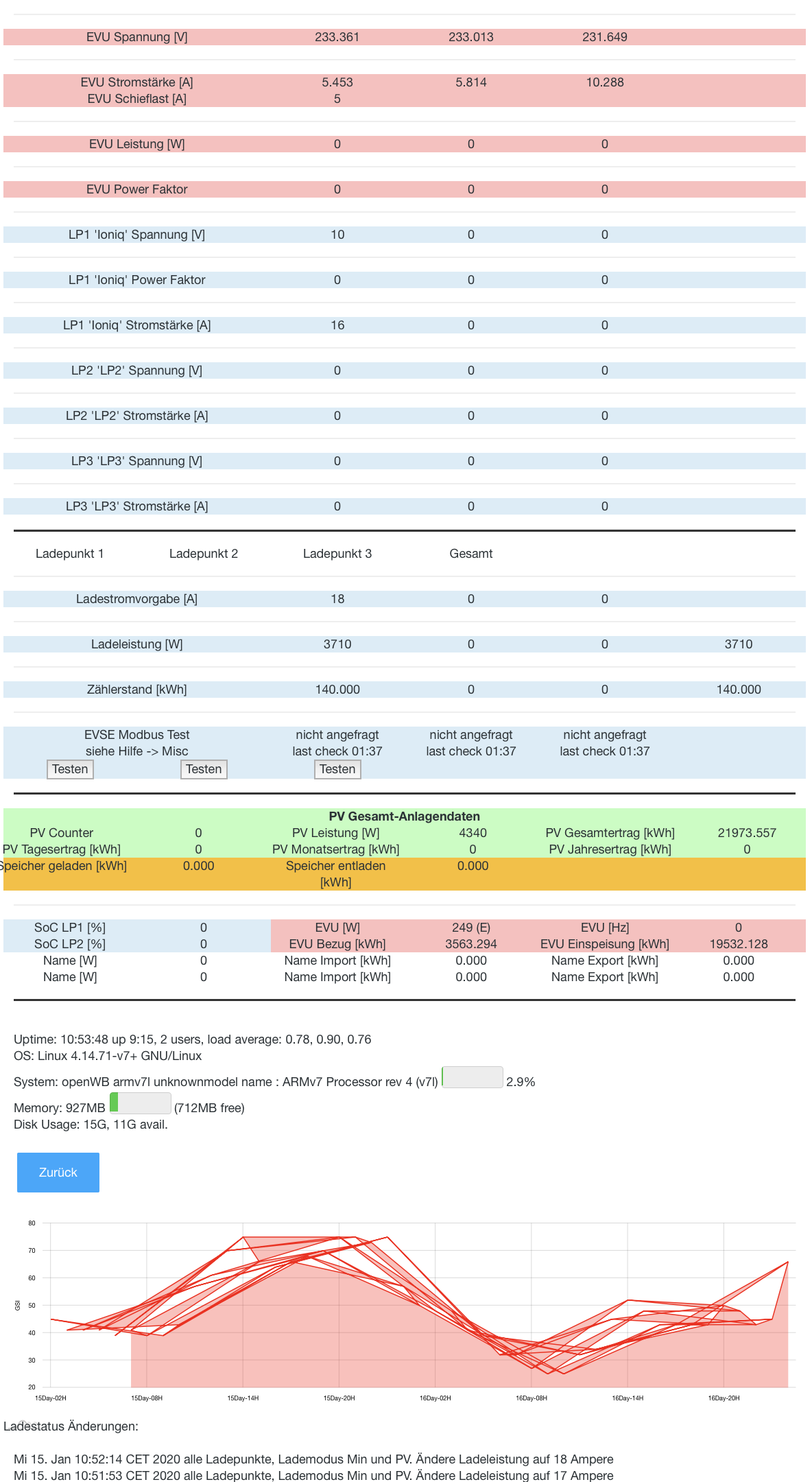 16,08 kWp via 2x Sungrow SH10RT V112 - Sungrow SBR128 Speicher mit 12,8 kWh - openWB series 1 (22kW, SW 2.X) - Solvis Mia 14kW Wärmepumpe - BMW i3 94 Ah