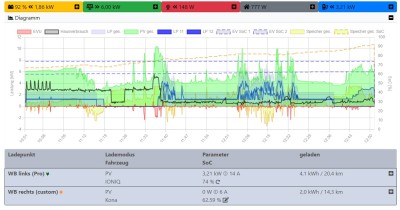Ok, einmal "aus" und wieder "an" hat tatsächlich den gewünschten Erfolg gebracht. Jetzt habe ich nur mehr das Problem der sehr unsauberen und sehr schwankenden Regelung, wenn zwei Autos laden, siehe auch Screenshot.Elchkopp hat geschrieben: So Sep 17, 2023 8:41 am Ja, so verstehe ich das: