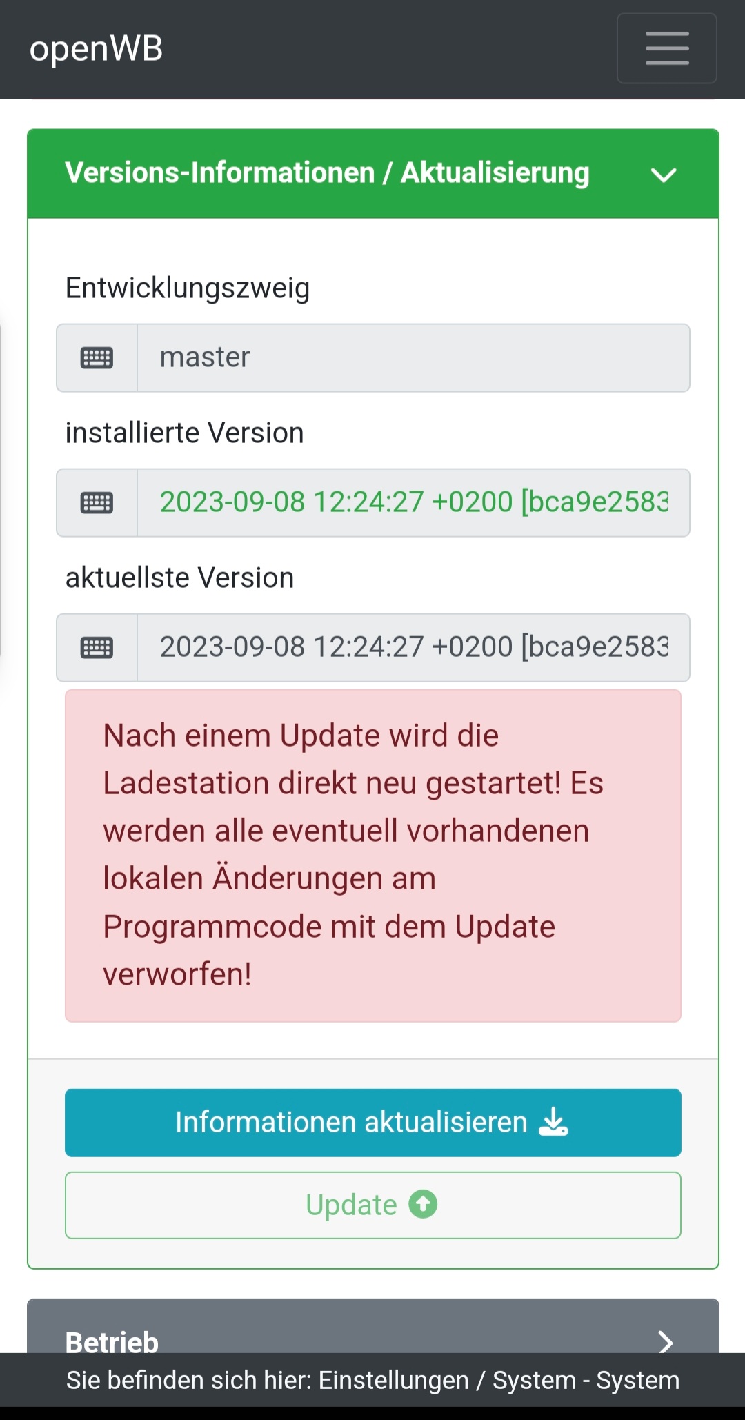 Elchkopp hat geschrieben: Di Sep 19, 2023 6:24 pm Kannst Du bitte noch einen Screenshot der Seite Konfiguration => Lastmanagement machen, wenn die beiden Module oben aufgeklappt sind?
