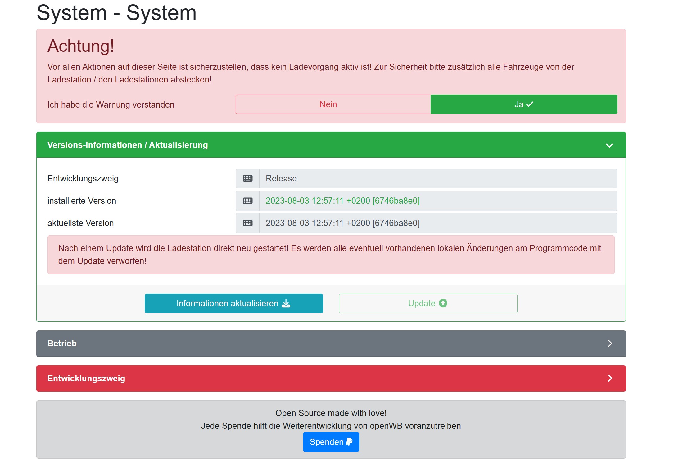 Für den normalen Betrieb wird der Zweig "Release" empfohlen. Der Softwarestand wurde ausgiebig getestet, sodass ein Fehlverhalten relativ unwahrscheinlich ist