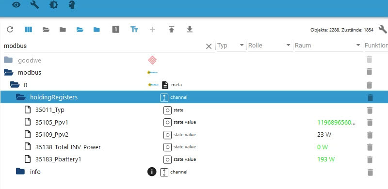 Das owb Modbus Modul scheint zu funktionieren. Ich habe vorher sichergestellt, dass Modbus funktioniert (iobroker modbus Adapter). Allerdings habe ich auch Fehler im Log