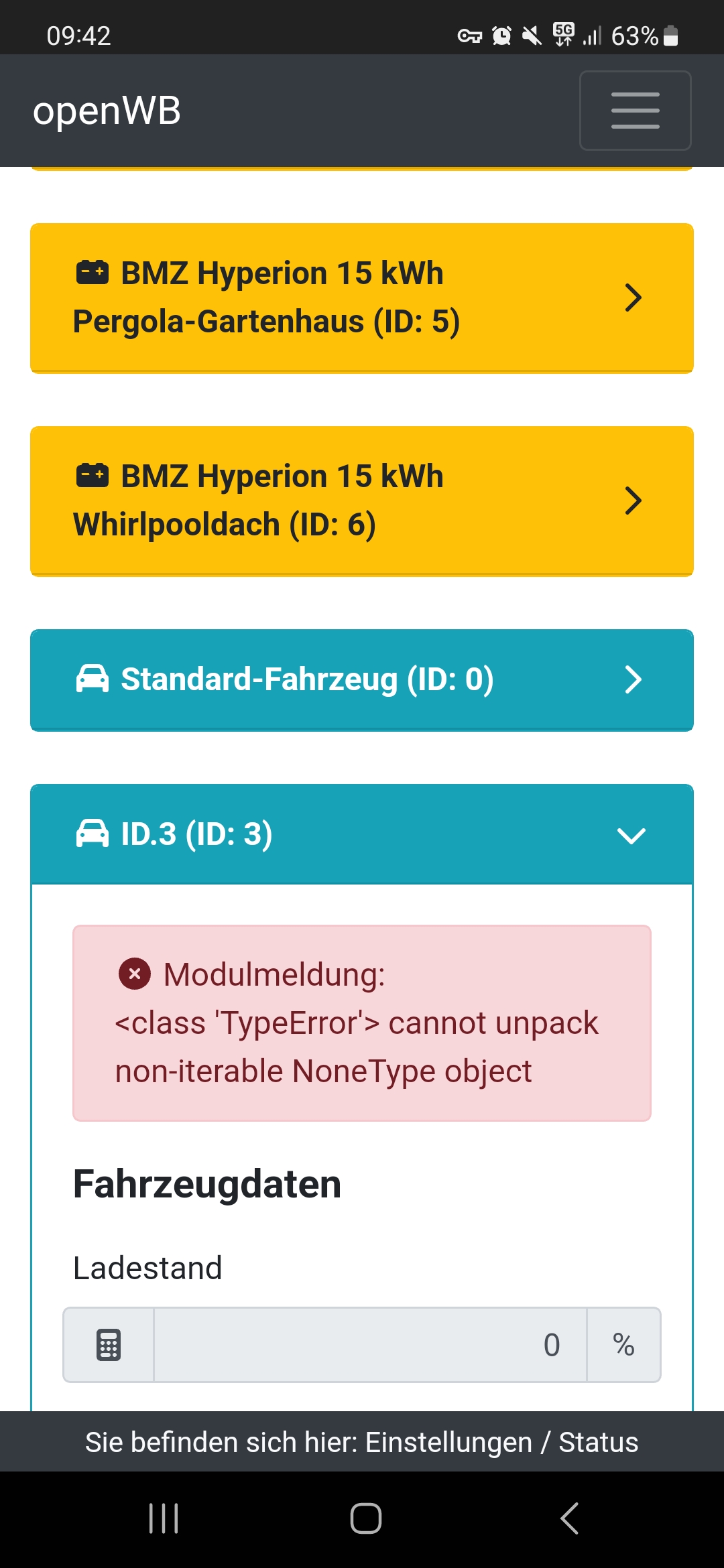 Wenn die Herstellereigene App und Webseite schon nicht laufen geht in der openWB zu 99,9% auch nichts.