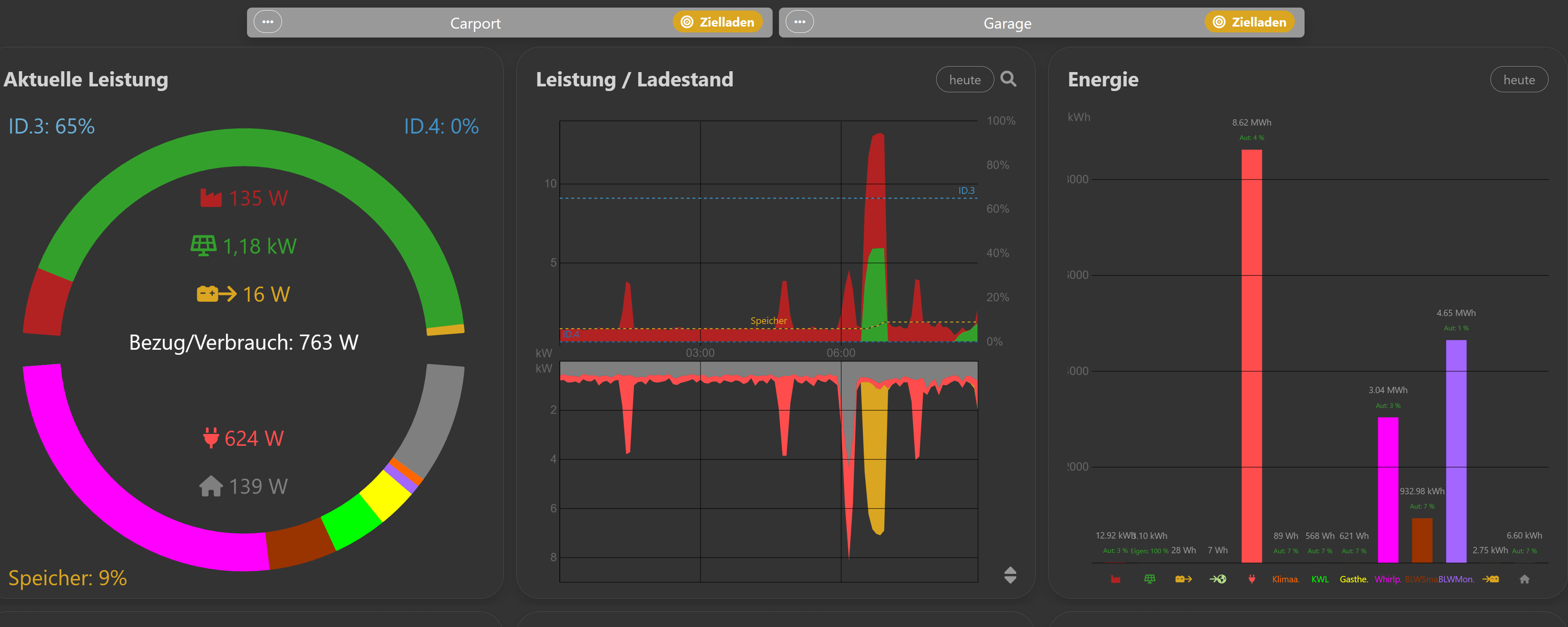 - allerdings fehlen jetzt wieder jegliche SOC Anzeigen im mittleren graph (Fzg und auch Speicher) und das in Tages wie auch 120min Sicht.