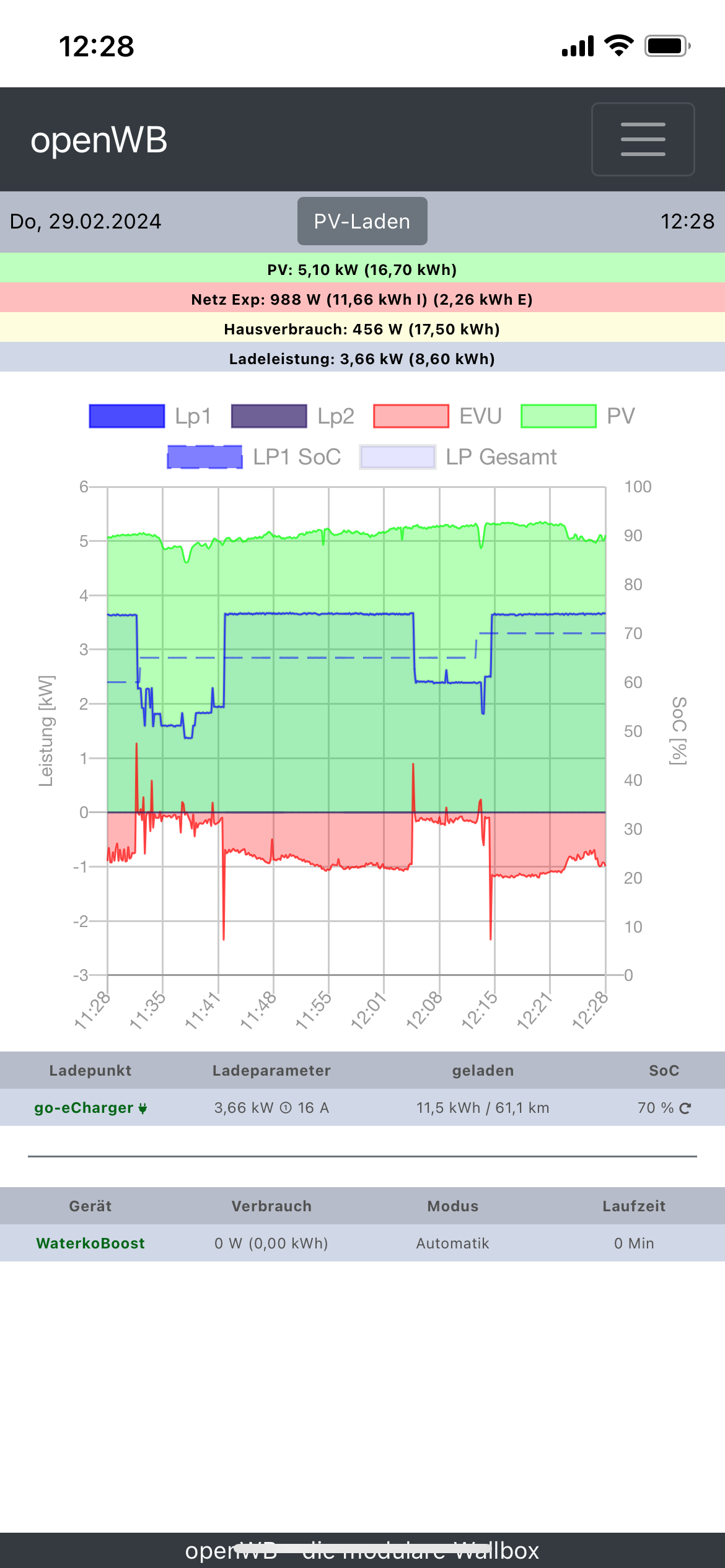 openWB standalone 1.9.303 / Cupra Born / go-eCharger Gemini V4 firmware 55.8 / PV-Anlage 9,9 kWp mit SunnyHomeManager 2.0