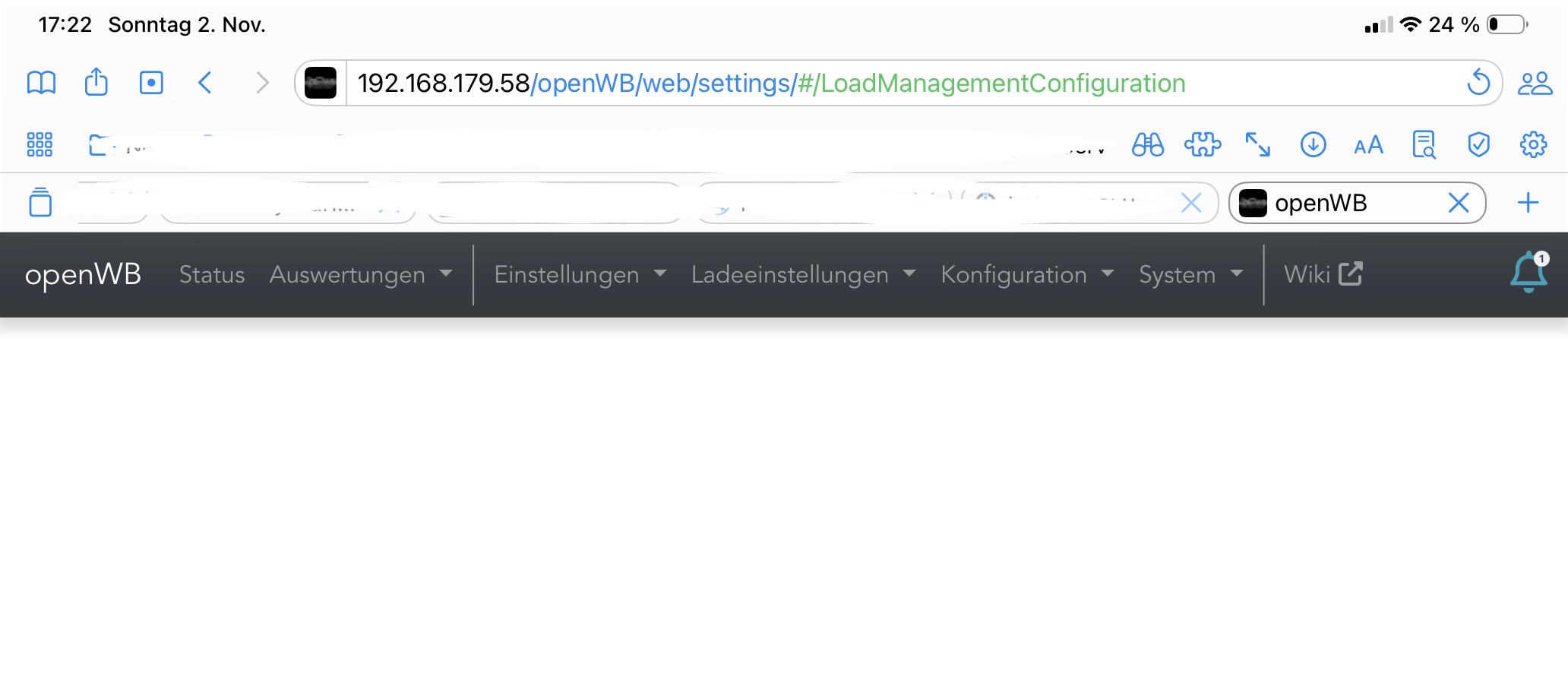 2. Das Menü „Lademanagement“ öffnet sich nicht mehr und der Body bleibt weiß: