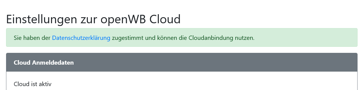 --> Was soll dann passieren? Ich komme wieder auf der Seite an, wo ich herkam "Einstellungen zur openWB Cloud"