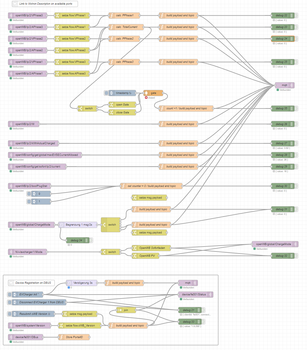 Habe den Node nochmal überarbeitet und dynamischer gestaltet. Es gibt nur noch ein MQTT publish - die notwendige portalID erhält das Node nun automatisch von venusOS bei der Registrierung der oWB.