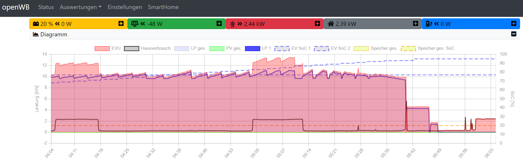 Ich habe nun die Stromstärke im Zielladen wieder auf 14A reduziert, da er das Ziel trotz 20 Minuten Nachlaufzeit nicht mehr ganz erreicht hat.