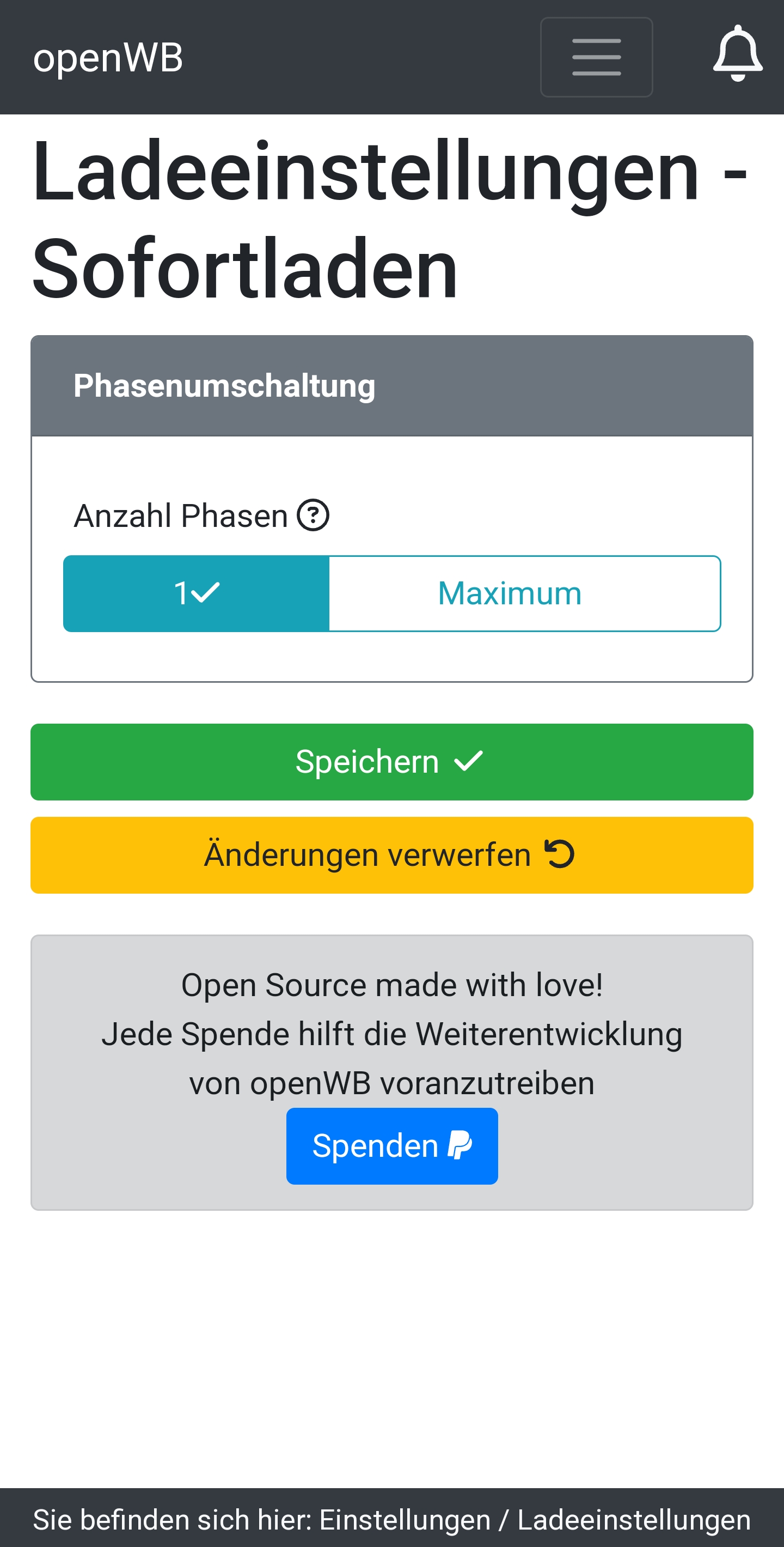 3. Ist die Einstellung unter "Sofortladen" mit der 1 Phase so richtig? Bezieht sich das auf das allgemeine laden, oder auf die Umschaltung bei einer PV Anlage, welche ich ja nicht habe. (siehe Foto)