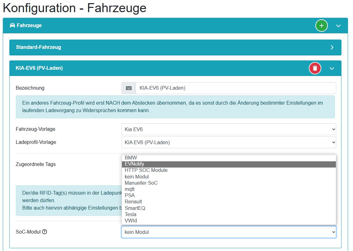 Der SOC KIA ist wie schon erwähnt gar nicht auswählbar. Nur VW, TESLA, Renault etc.