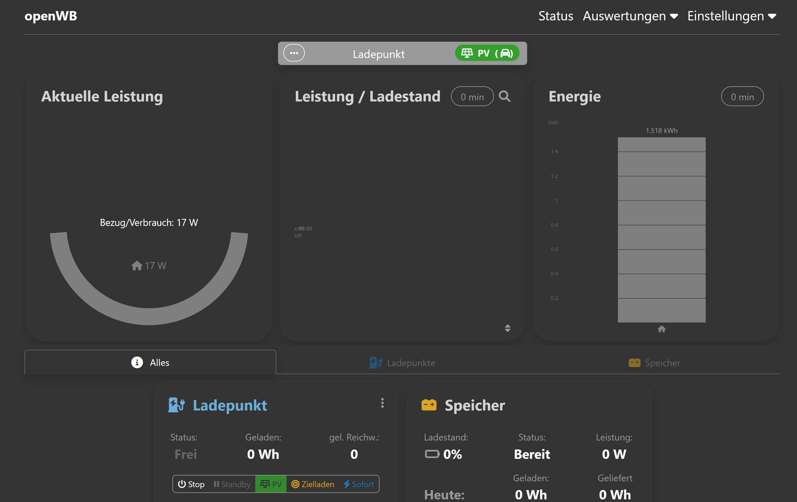 - Aktuell sieht man den aktuell gültigen Strompreis nur im Ladepunkt-Wigdget, und auch nur in der "Langform". Ich finde, der gehört auch mit in die Momentanverbrauchsanzeige, Bei mir (OWB-Duo) wäre dafür noch unten rechts Platz. Ich könnte mir den Preis aber auch gut innerhalb des Kreises vorstellen, womöglich nur dann, wenn tatsächlich Bezug ist, ...