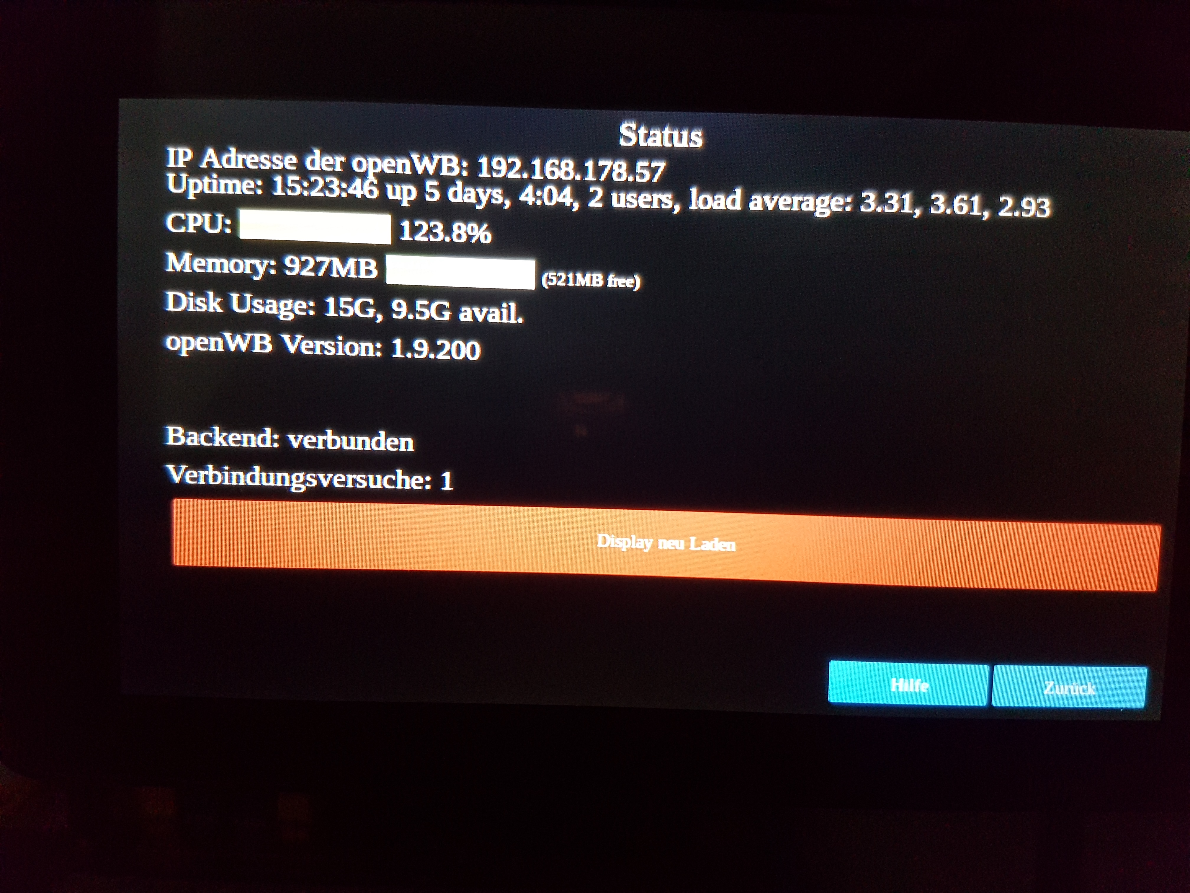 Das Display reagiert auch extrem verzögert auf Eingaben - erst nach ca. 10 sek des Betätigen des Buttons "Status" wurde auch der Bildschirm "Status" geöffnet.