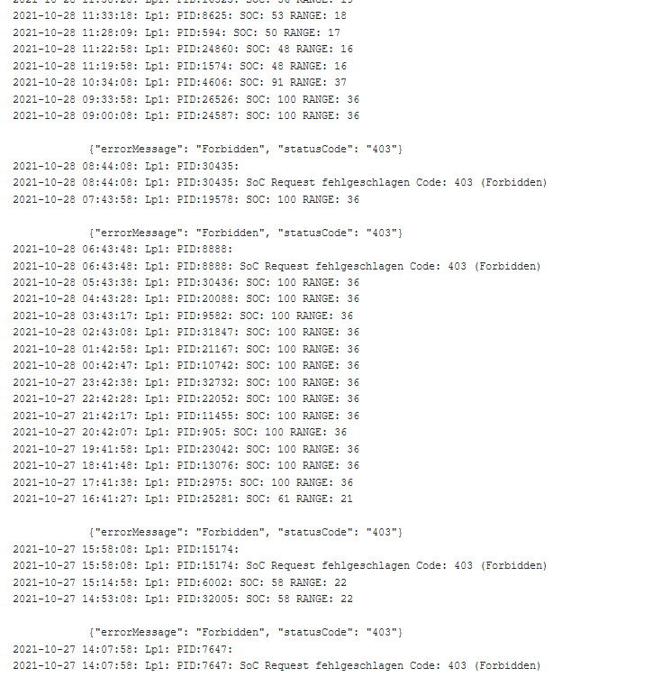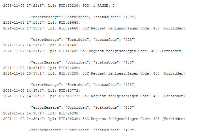 Erster Blick auf die Werte bei mir sieht auch gut aus. Keine 403 und korrekter SoC.