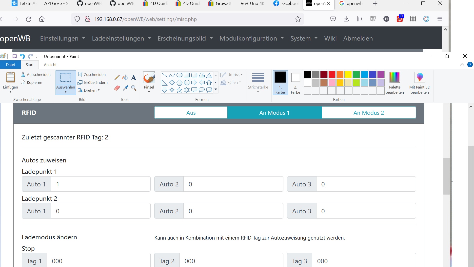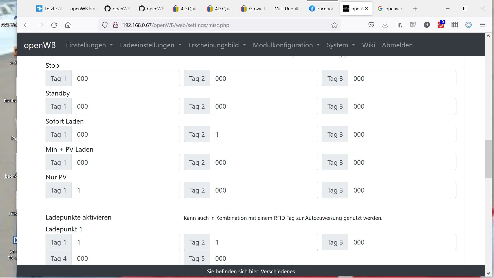 RFID "Sofort" im Go-e angelernt. In openWB wird nun -nach Vorhalten des neuen Chips - zuletzt Gescannter Tag "2" angezeigt. Auto ist noch unterwegs...